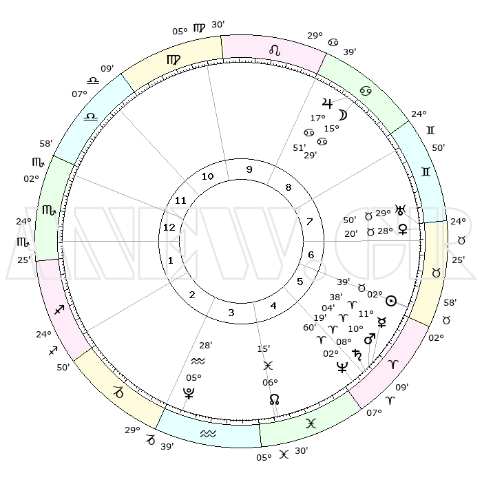 | | ΘΕΣΕΙΣ ΠΛΑΝΗΤΩΝ ΑΣΤΡΟΛΟΓΙΚΟΥ ΧΑΡΤΗ ΤΗΣ ΣΤΙΓΜΗΣ ΑΥΤΗΣ | | | | Πλανήτης | Ζώδιο | Μοίρες | Δεκαήμ. | Σε οίκο | Απόκλιση | | Ακμές των οίκων | | Ηλιος | Ταύρος | 00°19' | Πρώτο | 10 | 11 N 35 | | 1ος | 28°31' | Καρκίνος | | Σελήνη | Δίδυμοι | 10°38' | Δεύτερο | 11 | 27 N 04 | | 2ος | 19°27' | Λέων | | Ερμής | Κριός | 07°49' | Πρώτο | 9 | 00 N 42 | | 3ος | 14°18' | Παρθένος | | Αφροδίτη | Ταύρος | 25°25' | Τρίτο | 11 | 19 N 31 | | 4ος | 15°09' | Ζυγός | | Αρης | Κριός | 08°13' | Πρώτο | 9 | 02 N 23 | | 5ος | 21°13' | Σκορπιός | | Δίας | Καρκίνος | 17°33' | Δεύτερο | 12 | 22 N 40 | | 6ος | 27°10' | Τοξότης | | Κρόνος | Κριός | 08°02' | Πρώτο | 9 | 01 N 12 | | 7ος | 28°31' | Αιγόκερως | | Ουρανός | Ταύρος | 29°42' | Τρίτο | 11 | 19 N 55 | | 8ος | 19°27' | Υδροχόος | | Ποσειδώνας | Κριός | 02°55' | Πρώτο | 9 | 00 S 03 | | 9ος | 14°18' | Ιχθείς | | Πλούτωνας | Υδροχόος | 05°27' | Πρώτο | 7 | 22 S 48 | | 10ος | 15°09' | Κριός | | Β. Δεσμός | Ιχθείς | 06°23' | Πρώτο | 8 | 09 S 10 | | 11ος | 21°13' | Ταύρος | | Ωροσκόπος | Καρκίνος | 28°31' | Τρίτο | | | 12ος | 27°10' | Δίδυμοι | | Μεσουράνημα | Κριός | 15°09' | Δεύτερο | | | |