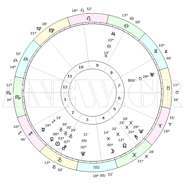 | | ΘΕΣΕΙΣ ΠΛΑΝΗΤΩΝ ΑΣΤΡΟΛΟΓΙΚΟΥ ΧΑΡΤΗ ΤΗΣ ΣΤΙΓΜΗΣ ΑΥΤΗΣ | | | | Πλανήτης | Ζώδιο | Μοίρες | Δεκαήμ. | Σε οίκο | Απόκλιση | | Ακμές των οίκων | | Ηλιος | Αιγόκερως | 03°26' | Πρώτο | 3 | 23 S 23 | | 1ος | 22°60' | Ζυγός | | Σελήνη | Υδροχόος | 29°25' | Τρίτο | 5 | 12 S 39 | | 2ος | 21°00' | Σκορπιός | | Ερμής | Τοξότης | 18°09' | Δεύτερο | 2 | 22 S 39 | | 3ος | 22°28' | Τοξότης | | Αφροδίτη | Αιγόκερως | 00°25' | Πρώτο | 3 | 23 S 40 | | 4ος | 26°13' | Αιγόκερως | | Αρης | Αιγόκερως | 07°21' | Πρώτο | 3 | 24 S 04 | | 5ος | 29°10' | Υδροχόος | | Δίας | Καρκίνος | 22°14'R | Τρίτο | 9 | 21 N 49 | | 6ος | 28°25' | Ιχθείς | | Κρόνος | Ιχθείς | 25°55' | Τρίτο | 5 | 03 S 43 | | 7ος | 22°60' | Κριός | | Ουρανός | Ταύρος | 28°09'R | Τρίτο | 8 | 19 N 33 | | 8ος | 21°00' | Ταύρος | | Ποσειδώνας | Ιχθείς | 29°26' | Τρίτο | 6 | 01 S 27 | | 9ος | 22°28' | Δίδυμοι | | Πλούτωνας | Υδροχόος | 02°31' | Πρώτο | 4 | 23 S 16 | | 10ος | 26°13' | Καρκίνος | | Β. Δεσμός | Ιχθείς | 12°32' | Δεύτερο | 5 | 06 S 51 | | 11ος | 29°10' | Λέων | | Ωροσκόπος | Ζυγός | 22°60' | Τρίτο | | | 12ος | 28°25' | Παρθένος | | Μεσουράνημα | Καρκίνος | 26°13' | Τρίτο | | | |