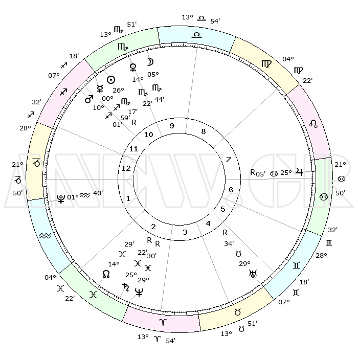 | | ΘΕΣΕΙΣ ΠΛΑΝΗΤΩΝ ΑΣΤΡΟΛΟΓΙΚΟΥ ΧΑΡΤΗ ΤΗΣ ΣΤΙΓΜΗΣ ΑΥΤΗΣ | | | | Πλανήτης | Ζώδιο | Μοίρες | Δεκαήμ. | Σε οίκο | Απόκλιση | | Ακμές των οίκων | | Ηλιος | Σκορπιός | 26°14' | Τρίτο | 11 | 19 S 18 | | 1ος | 00°33' | Αιγόκερως | | Σελήνη | Σκορπιός | 05°02' | Πρώτο | 10 | 16 S 47 | | 2ος | 07°50' | Υδροχόος | | Ερμής | Τοξότης | 01°03'R | Πρώτο | 11 | 20 S 31 | | 3ος | 17°52' | Ιχθείς | | Αφροδίτη | Σκορπιός | 14°17' | Δεύτερο | 10 | 15 S 03 | | 4ος | 21°43' | Κριός | | Αρης | Τοξότης | 09°59' | Πρώτο | 12 | 22 S 29 | | 5ος | 17°57' | Ταύρος | | Δίας | Καρκίνος | 25°05'R | Τρίτο | 7 | 21 N 14 | | 6ος | 09°43' | Δίδυμοι | | Κρόνος | Ιχθείς | 25°22'R | Τρίτο | 3 | 04 S 03 | | 7ος | 00°33' | Καρκίνος | | Ουρανός | Ταύρος | 29°34'R | Τρίτο | 5 | 19 N 51 | | 8ος | 07°50' | Λέων | | Ποσειδώνας | Ιχθείς | 29°30'R | Τρίτο | 3 | 01 S 27 | | 9ος | 17°52' | Παρθένος | | Πλούτωνας | Υδροχόος | 01°40' | Πρώτο | 1 | 23 S 27 | | 10ος | 21°43' | Ζυγός | | Β. Δεσμός | Ιχθείς | 14°29' | Δεύτερο | 2 | 06 S 06 | | 11ος | 17°57' | Σκορπιός | | Ωροσκόπος | Αιγόκερως | 00°33' | Πρώτο | | | 12ος | 09°43' | Τοξότης | | Μεσουράνημα | Ζυγός | 21°43' | Τρίτο | | | |