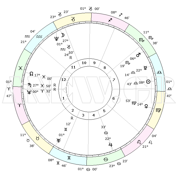 | ΘΕΣΕΙΣ ΠΛΑΝΗΤΩΝ ΑΣΤΡΟΛΟΓΙΚΟΥ ΧΑΡΤΗ ΤΗΣ ΣΤΙΓΜΗΣ ΑΥΤΗΣ | | Πλανήτης | Ζώδιο | Μοίρες | Δεκαήμ. | Σε οίκο | Απόκλιση | | Ακμές των οίκων | Ηλιος | Ζυγός | 08°38' | Πρώτο | 8 | 03 S 26 | | 1ος | 15°01' | Υδροχόος | Σελήνη | Αιγόκερως | 26°45' | Τρίτο | 12 | 24 S 50 | | 2ος | 00°43' | Κριός | Ερμής | Ζυγός | 22°06' | Τρίτο | 8 | 08 S 46 | | 3ος | 06°25' | Ταύρος | Αφροδίτη | Παρθένος | 14°47' | Δεύτερο | 7 | 07 N 11 | | 4ος | 02°34' | Δίδυμοι | Αρης | Σκορπιός | 06°16' | Πρώτο | 8 | 13 S 41 | | 5ος | 24°32' | Δίδυμοι | Δίας | Καρκίνος | 22°32' | Τρίτο | 6 | 21 N 34 | | 6ος | 16°47' | Καρκίνος | Κρόνος | Ιχθείς | 27°51'R | Τρίτο | 1 | 03 S 10 | | 7ος | 15°01' | Λέων | Ουρανός | Δίδυμοι | 01°12'R | Πρώτο | 3 | 20 N 11 | | 8ος | 00°43' | Ζυγός | Ποσειδώνας | Κριός | 00°32'R | Πρώτο | 1 | 01 S 03 | | 9ος | 06°26' | Σκορπιός | Πλούτωνας | Υδροχόος | 01°24'R | Πρώτο | 12 | 23 S 32 | | 10ος | 02°34' | Τοξότης | Β. Δεσμός | Ιχθείς | 17°01' | Δεύτερο | 1 | 05 S 08 | | 11ος | 24°32' | Τοξότης | Ωροσκόπος | Υδροχόος | 15°01' | Δεύτερο | | | 12ος | 16°47' | Αιγόκερως | Μεσουράνημα | Τοξότης | 02°34' | Πρώτο | | | |