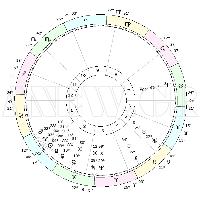 | | ΘΕΣΕΙΣ ΠΛΑΝΗΤΩΝ ΑΣΤΡΟΛΟΓΙΚΟΥ ΧΑΡΤΗ ΤΗΣ ΣΤΙΓΜΗΣ ΑΥΤΗΣ | | | | Πλανήτης | Ζώδιο | Μοίρες | Δεκαήμ. | Σε οίκο | Απόκλιση | | Ακμές των οίκων | | Ηλιος | Υδροχόος | 06°06' | Πρώτο | 2 | 18 S 45 | | 1ος | 06°37' | Τοξότης | | Σελήνη | Ταύρος | 04°20' | Πρώτο | 5 | 16 N 58 | | 2ος | 08°45' | Αιγόκερως | | Ερμής | Υδροχόος | 09°07' | Πρώτο | 2 | 19 S 59 | | 3ος | 15°34' | Υδροχόος | | Αφροδίτη | Υδροχόος | 10°44' | Δεύτερο | 2 | 18 S 45 | | 4ος | 21°39' | Ιχθείς | | Αρης | Υδροχόος | 02°06' | Πρώτο | 2 | 20 S 41 | | 5ος | 21°47' | Κριός | | Δίας | Καρκίνος | 18°03'R | Δεύτερο | 8 | 22 N 30 | | 6ος | 15°57' | Ταύρος | | Κρόνος | Ιχθείς | 28°11' | Τρίτο | 4 | 02 S 44 | | 7ος | 06°37' | Δίδυμοι | | Ουρανός | Ταύρος | 27°30'R | Τρίτο | 6 | 19 N 25 | | 8ος | 08°45' | Καρκίνος | | Ποσειδώνας | Ιχθείς | 29°59' | Τρίτο | 4 | 01 S 13 | | 9ος | 15°34' | Λέων | | Πλούτωνας | Υδροχόος | 03°31' | Πρώτο | 2 | 23 S 03 | | 10ος | 21°39' | Παρθένος | | Β. Δεσμός | Ιχθείς | 10°51' | Δεύτερο | 3 | 07 S 30 | | 11ος | 21°47' | Ζυγός | | Ωροσκόπος | Τοξότης | 06°37' | Πρώτο | | | 12ος | 15°57' | Σκορπιός | | Μεσουράνημα | Παρθένος | 21°39' | Τρίτο | | | |