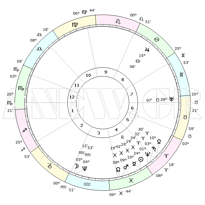 | | ΘΕΣΕΙΣ ΠΛΑΝΗΤΩΝ ΑΣΤΡΟΛΟΓΙΚΟΥ ΧΑΡΤΗ ΤΗΣ ΣΤΙΓΜΗΣ ΑΥΤΗΣ | | | | Πλανήτης | Ζώδιο | Μοίρες | Δεκαήμ. | Σε οίκο | Απόκλιση | | Ακμές των οίκων | | Ηλιος | Ιχθείς | 24°15' | Τρίτο | 5 | 02 S 17 | | 1ος | 07°51' | Σκορπιός | | Σελήνη | Υδροχόος | 02°30' | Πρώτο | 3 | 22 S 39 | | 2ος | 06°47' | Τοξότης | | Ερμής | Ιχθείς | 10°20'R | Δεύτερο | 4 | 05 S 25 | | 3ος | 09°27' | Αιγόκερως | | Αφροδίτη | Κριός | 10°26' | Δεύτερο | 5 | 03 N 10 | | 4ος | 14°12' | Υδροχόος | | Αρης | Ιχθείς | 09°39' | Πρώτο | 4 | 08 S 57 | | 5ος | 16°57' | Ιχθείς | | Δίας | Καρκίνος | 15°06' | Δεύτερο | 9 | 22 N 56 | | 6ος | 14°50' | Κριός | | Κρόνος | Κριός | 03°31' | Πρώτο | 5 | 00 S 33 | | 7ος | 07°51' | Ταύρος | | Ουρανός | Ταύρος | 28°06' | Τρίτο | 7 | 19 N 34 | | 8ος | 06°47' | Δίδυμοι | | Ποσειδώνας | Κριός | 01°34' | Πρώτο | 5 | 00 S 35 | | 9ος | 09°27' | Καρκίνος | | Πλούτωνας | Υδροχόος | 04°53' | Πρώτο | 3 | 22 S 49 | | 10ος | 14°12' | Λέων | | Β. Δεσμός | Ιχθείς | 08°19' | Πρώτο | 4 | 08 S 27 | | 11ος | 16°57' | Παρθένος | | Ωροσκόπος | Σκορπιός | 07°51' | Πρώτο | | | 12ος | 14°50' | Ζυγός | | Μεσουράνημα | Λέων | 14°12' | Δεύτερο | | | |