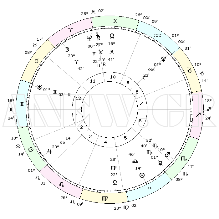 | ΘΕΣΕΙΣ ΠΛΑΝΗΤΩΝ ΑΣΤΡΟΛΟΓΙΚΟΥ ΧΑΡΤΗ ΤΗΣ ΣΤΙΓΜΗΣ ΑΥΤΗΣ | | Πλανήτης | Ζώδιο | Μοίρες | Δεκαήμ. | Σε οίκο | Απόκλιση | | Ακμές των οίκων | Ηλιος | Ζυγός | 14°40' | Δεύτερο | 6 | 05 S 47 | | 1ος | 03°51' | Ταύρος | Σελήνη | Κριός | 22°11' | Τρίτο | 12 | 11 N 21 | | 2ος | 05°01' | Δίδυμοι | Ερμής | Σκορπιός | 01°31' | Πρώτο | 6 | 12 S 51 | | 3ος | 28°12' | Δίδυμοι | Αφροδίτη | Παρθένος | 22°21' | Τρίτο | 6 | 04 N 21 | | 4ος | 19°55' | Καρκίνος | Αρης | Σκορπιός | 10°27' | Δεύτερο | 7 | 15 S 06 | | 5ος | 14°43' | Λέων | Δίας | Καρκίνος | 23°14' | Τρίτο | 4 | 21 N 28 | | 6ος | 18°12' | Παρθένος | Κρόνος | Ιχθείς | 27°24'R | Τρίτο | 12 | 03 S 20 | | 7ος | 03°51' | Σκορπιός | Ουρανός | Δίδυμοι | 01°03'R | Πρώτο | 1 | 20 N 10 | | 8ος | 05°01' | Τοξότης | Ποσειδώνας | Κριός | 00°22'R | Πρώτο | 12 | 01 S 07 | | 9ος | 28°12' | Τοξότης | Πλούτωνας | Υδροχόος | 01°23'R | Πρώτο | 10 | 23 S 32 | | 10ος | 19°55' | Αιγόκερως | Β. Δεσμός | Ιχθείς | 16°41' | Δεύτερο | 11 | 05 S 15 | | 11ος | 14°43' | Υδροχόος | Ωροσκόπος | Ταύρος | 03°51' | Πρώτο | | | 12ος | 18°12' | Ιχθείς | Μεσουράνημα | Αιγόκερως | 19°55' | Δεύτερο | | | |