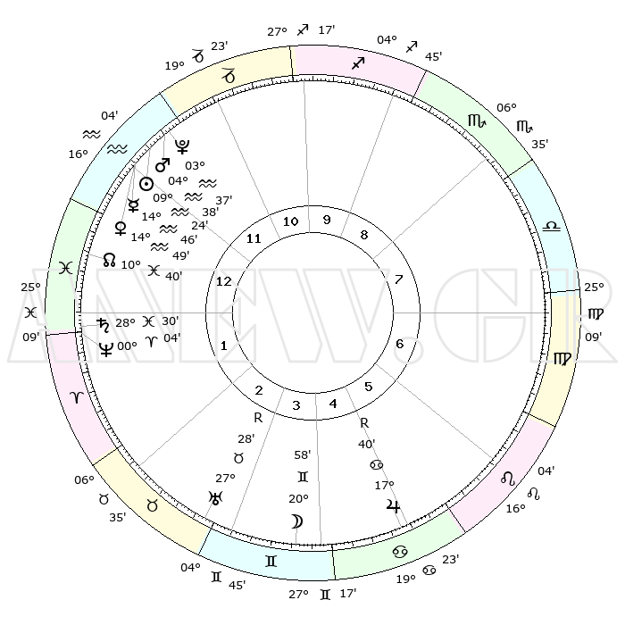 | | ΘΕΣΕΙΣ ΠΛΑΝΗΤΩΝ ΑΣΤΡΟΛΟΓΙΚΟΥ ΧΑΡΤΗ ΤΗΣ ΣΤΙΓΜΗΣ ΑΥΤΗΣ | | | | Πλανήτης | Ζώδιο | Μοίρες | Δεκαήμ. | Σε οίκο | Απόκλιση | | Ακμές των οίκων | | Ηλιος | Υδροχόος | 09°20' | Πρώτο | 12 | 17 S 55 | | 1ος | 19°45' | Υδροχόος | | Σελήνη | Δίδυμοι | 20°03' | Τρίτο | 4 | 28 N 09 | | 2ος | 05°34' | Κριός | | Ερμής | Υδροχόος | 14°40' | Δεύτερο | 12 | 18 S 21 | | 3ος | 10°20' | Ταύρος | | Αφροδίτη | Υδροχόος | 14°45' | Δεύτερο | 12 | 17 S 40 | | 4ος | 05°52' | Δίδυμοι | | Αρης | Υδροχόος | 04°35' | Πρώτο | 12 | 20 S 07 | | 5ος | 27°41' | Δίδυμοι | | Δίας | Καρκίνος | 17°40'R | Δεύτερο | 5 | 22 N 34 | | 6ος | 20°18' | Καρκίνος | | Κρόνος | Ιχθείς | 28°29' | Τρίτο | 1 | 02 S 36 | | 7ος | 19°45' | Λέων | | Ουρανός | Ταύρος | 27°28'R | Τρίτο | 3 | 19 N 24 | | 8ος | 05°34' | Ζυγός | | Ποσειδώνας | Κριός | 00°04' | Πρώτο | 1 | 01 S 11 | | 9ος | 10°20' | Σκορπιός | | Πλούτωνας | Υδροχόος | 03°37' | Πρώτο | 12 | 23 S 02 | | 10ος | 05°52' | Τοξότης | | Β. Δεσμός | Ιχθείς | 10°40' | Δεύτερο | 1 | 07 S 34 | | 11ος | 27°41' | Τοξότης | | Ωροσκόπος | Υδροχόος | 19°45' | Δεύτερο | | | 12ος | 20°18' | Αιγόκερως | | Μεσουράνημα | Τοξότης | 05°52' | Πρώτο | | | |