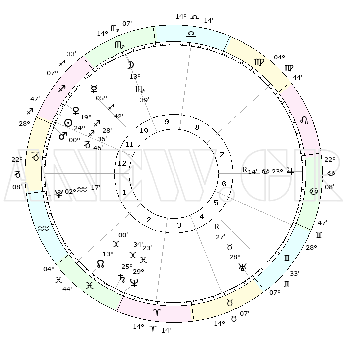 | | ΘΕΣΕΙΣ ΠΛΑΝΗΤΩΝ ΑΣΤΡΟΛΟΓΙΚΟΥ ΧΑΡΤΗ ΤΗΣ ΣΤΙΓΜΗΣ ΑΥΤΗΣ | | | | Πλανήτης | Ζώδιο | Μοίρες | Δεκαήμ. | Σε οίκο | Απόκλιση | | Ακμές των οίκων | | Ηλιος | Τοξότης | 24°53' | Τρίτο | 7 | 23 S 20 | | 1ος | 12°01' | Δίδυμοι | | Σελήνη | Σκορπιός | 16°57' | Δεύτερο | 6 | 21 S 13 | | 2ος | 04°42' | Καρκίνος | | Ερμής | Τοξότης | 06°05' | Πρώτο | 6 | 20 S 00 | | 3ος | 25°55' | Καρκίνος | | Αφροδίτη | Τοξότης | 19°49' | Δεύτερο | 7 | 22 S 57 | | 4ος | 19°46' | Λέων | | Αρης | Αιγόκερως | 00°58' | Πρώτο | 7 | 24 S 13 | | 5ος | 20°26' | Παρθένος | | Δίας | Καρκίνος | 23°12'R | Τρίτο | 2 | 21 N 38 | | 6ος | 00°21' | Σκορπιός | | Κρόνος | Ιχθείς | 25°35' | Τρίτο | 11 | 03 S 53 | | 7ος | 12°01' | Τοξότης | | Ουρανός | Ταύρος | 28°26'R | Τρίτο | 12 | 19 N 37 | | 8ος | 04°42' | Αιγόκερως | | Ποσειδώνας | Ιχθείς | 29°23' | Τρίτο | 11 | 01 S 29 | | 9ος | 25°55' | Αιγόκερως | | Πλούτωνας | Υδροχόος | 02°17' | Πρώτο | 9 | 23 S 19 | | 10ος | 19°46' | Υδροχόος | | Β. Δεσμός | Ιχθείς | 12°59' | Δεύτερο | 10 | 06 S 41 | | 11ος | 20°26' | Ιχθείς | | Ωροσκόπος | Δίδυμοι | 12°01' | Δεύτερο | | | 12ος | 00°21' | Ταύρος | | Μεσουράνημα | Υδροχόος | 19°46' | Δεύτερο | | | |