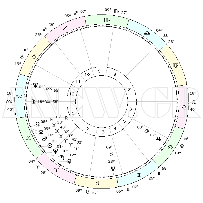 | | ΘΕΣΕΙΣ ΠΛΑΝΗΤΩΝ ΑΣΤΡΟΛΟΓΙΚΟΥ ΧΑΡΤΗ ΤΗΣ ΣΤΙΓΜΗΣ ΑΥΤΗΣ | | | | Πλανήτης | Ζώδιο | Μοίρες | Δεκαήμ. | Σε οίκο | Απόκλιση | | Ακμές των οίκων | | Ηλιος | Ιχθείς | 25°29' | Τρίτο | 2 | 01 S 48 | | 1ος | 22°22' | Αιγόκερως | | Σελήνη | Υδροχόος | 18°12' | Δεύτερο | 1 | 17 S 09 | | 2ος | 05°01' | Ιχθείς | | Ερμής | Ιχθείς | 09°39'R | Πρώτο | 2 | 05 S 57 | | 3ος | 14°30' | Κριός | | Αφροδίτη | Κριός | 11°58' | Δεύτερο | 2 | 03 N 48 | | 4ος | 14°20' | Ταύρος | | Αρης | Ιχθείς | 10°37' | Δεύτερο | 2 | 08 S 35 | | 5ος | 07°45' | Δίδυμοι | | Δίας | Καρκίνος | 15°08' | Δεύτερο | 6 | 22 N 56 | | 6ος | 28°59' | Δίδυμοι | | Κρόνος | Κριός | 03°41' | Πρώτο | 2 | 00 S 29 | | 7ος | 22°22' | Καρκίνος | | Ουρανός | Ταύρος | 28°09' | Τρίτο | 4 | 19 N 34 | | 8ος | 05°01' | Παρθένος | | Ποσειδώνας | Κριός | 01°36' | Πρώτο | 2 | 00 S 34 | | 9ος | 14°30' | Ζυγός | | Πλούτωνας | Υδροχόος | 04°55' | Πρώτο | 1 | 22 S 49 | | 10ος | 14°20' | Σκορπιός | | Β. Δεσμός | Ιχθείς | 08°15' | Πρώτο | 2 | 08 S 29 | | 11ος | 07°45' | Τοξότης | | Ωροσκόπος | Αιγόκερως | 22°22' | Τρίτο | | | 12ος | 28°59' | Τοξότης | | Μεσουράνημα | Σκορπιός | 14°20' | Δεύτερο | | | |