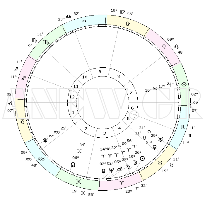 | | ΘΕΣΕΙΣ ΠΛΑΝΗΤΩΝ ΑΣΤΡΟΛΟΓΙΚΟΥ ΧΑΡΤΗ ΤΗΣ ΣΤΙΓΜΗΣ ΑΥΤΗΣ | | | | Πλανήτης | Ζώδιο | Μοίρες | Δεκαήμ. | Σε οίκο | Απόκλιση | | Ακμές των οίκων | | Ηλιος | Κριός | 26°52' | Τρίτο | 4 | 10 N 21 | | 1ος | 11°54' | Τοξότης | | Σελήνη | Κριός | 18°14' | Δεύτερο | 4 | 10 N 12 | | 2ος | 14°59' | Αιγόκερως | | Ερμής | Κριός | 02°28' | Πρώτο | 4 | 01 S 26 | | 3ος | 22°42' | Υδροχόος | | Αφροδίτη | Ταύρος | 21°06' | Τρίτο | 5 | 18 N 17 | | 4ος | 28°36' | Ιχθείς | | Αρης | Κριός | 05°29' | Πρώτο | 4 | 01 N 17 | | 5ος | 27°55' | Κριός | | Δίας | Καρκίνος | 17°10' | Δεύτερο | 8 | 22 N 43 | | 6ος | 21°25' | Ταύρος | | Κρόνος | Κριός | 07°37' | Πρώτο | 4 | 01 N 03 | | 7ος | 11°54' | Δίδυμοι | | Ουρανός | Ταύρος | 29°31' | Τρίτο | 6 | 19 N 53 | | 8ος | 14°59' | Καρκίνος | | Ποσειδώνας | Κριός | 02°47' | Πρώτο | 4 | 00 S 06 | | 9ος | 22°42' | Λέων | | Πλούτωνας | Υδροχόος | 05°25' | Πρώτο | 2 | 22 S 47 | | 10ος | 28°36' | Παρθένος | | Β. Δεσμός | Ιχθείς | 06°34' | Πρώτο | 3 | 09 S 06 | | 11ος | 27°55' | Ζυγός | | Ωροσκόπος | Τοξότης | 11°54' | Δεύτερο | | | 12ος | 21°25' | Σκορπιός | | Μεσουράνημα | Παρθένος | 28°36' | Τρίτο | | | |