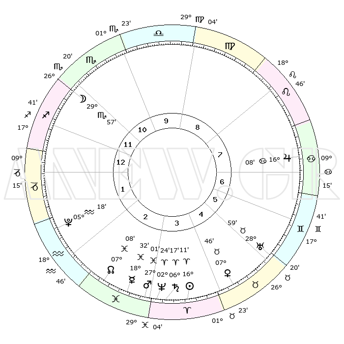 | | ΘΕΣΕΙΣ ΠΛΑΝΗΤΩΝ ΑΣΤΡΟΛΟΓΙΚΟΥ ΧΑΡΤΗ ΤΗΣ ΣΤΙΓΜΗΣ ΑΥΤΗΣ | | | | Πλανήτης | Ζώδιο | Μοίρες | Δεκαήμ. | Σε οίκο | Απόκλιση | | Ακμές των οίκων | | Ηλιος | Κριός | 16°07' | Δεύτερο | 4 | 06 N 20 | | 1ος | 13°45' | Τοξότης | | Σελήνη | Σκορπιός | 29°01' | Τρίτο | 12 | 24 S 54 | | 2ος | 17°11' | Αιγόκερως | | Ερμής | Ιχθείς | 18°26' | Δεύτερο | 3 | 06 S 22 | | 3ος | 25°11' | Υδροχόος | | Αφροδίτη | Ταύρος | 07°40' | Πρώτο | 5 | 13 N 51 | | 4ος | 00°59' | Κριός | | Αρης | Ιχθείς | 26°57' | Τρίτο | 3 | 02 S 09 | | 5ος | 00°00' | Ταύρος | | Δίας | Καρκίνος | 16°08' | Δεύτερο | 7 | 22 N 50 | | 6ος | 23°18' | Ταύρος | | Κρόνος | Κριός | 06°16' | Πρώτο | 4 | 00 N 32 | | 7ος | 13°45' | Δίδυμοι | | Ουρανός | Ταύρος | 28°59' | Τρίτο | 6 | 19 N 46 | | 8ος | 17°11' | Καρκίνος | | Ποσειδώνας | Κριός | 02°24' | Πρώτο | 4 | 00 S 15 | | 9ος | 25°11' | Λέων | | Πλούτωνας | Υδροχόος | 05°17' | Πρώτο | 2 | 22 S 47 | | 10ος | 00°59' | Ζυγός | | Β. Δεσμός | Ιχθείς | 07°09' | Πρώτο | 3 | 08 S 53 | | 11ος | 00°00' | Σκορπιός | | Ωροσκόπος | Τοξότης | 13°45' | Δεύτερο | | | 12ος | 23°18' | Σκορπιός | | Μεσουράνημα | Ζυγός | 00°59' | Πρώτο | | | |