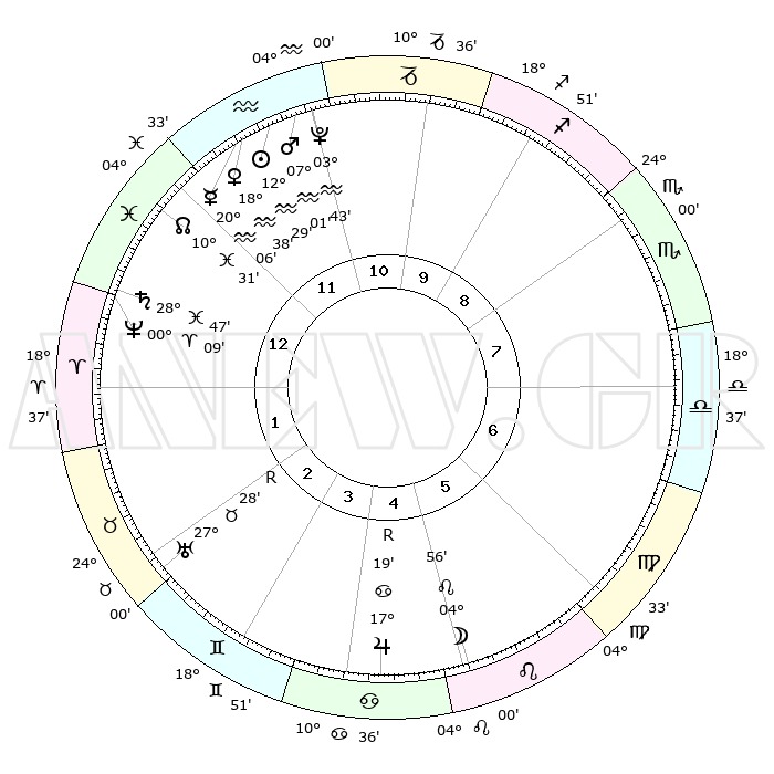 | | ΘΕΣΕΙΣ ΠΛΑΝΗΤΩΝ ΑΣΤΡΟΛΟΓΙΚΟΥ ΧΑΡΤΗ ΤΗΣ ΣΤΙΓΜΗΣ ΑΥΤΗΣ | | | | Πλανήτης | Ζώδιο | Μοίρες | Δεκαήμ. | Σε οίκο | Απόκλιση | | Ακμές των οίκων | | Ηλιος | Υδροχόος | 12°25' | Δεύτερο | 12 | 17 S 04 | | 1ος | 08°13' | Ιχθείς | | Σελήνη | Λέων | 03°57' | Πρώτο | 6 | 22 N 11 | | 2ος | 22°45' | Κριός | | Ερμής | Υδροχόος | 19°59' | Δεύτερο | 12 | 16 S 35 | | 3ος | 23°53' | Ταύρος | | Αφροδίτη | Υδροχόος | 18°33' | Δεύτερο | 12 | 16 S 34 | | 4ος | 17°32' | Δίδυμοι | | Αρης | Υδροχόος | 06°57' | Πρώτο | 12 | 19 S 32 | | 5ος | 09°15' | Καρκίνος | | Δίας | Καρκίνος | 17°19'R | Δεύτερο | 5 | 22 N 37 | | 6ος | 03°42' | Λέων | | Κρόνος | Ιχθείς | 28°47' | Τρίτο | 1 | 02 S 29 | | 7ος | 08°13' | Παρθένος | | Ουρανός | Ταύρος | 27°28'R | Τρίτο | 3 | 19 N 24 | | 8ος | 22°45' | Ζυγός | | Ποσειδώνας | Κριός | 00°09' | Πρώτο | 1 | 01 S 09 | | 9ος | 23°53' | Σκορπιός | | Πλούτωνας | Υδροχόος | 03°43' | Πρώτο | 12 | 23 S 01 | | 10ος | 17°32' | Τοξότης | | Β. Δεσμός | Ιχθείς | 10°31' | Δεύτερο | 1 | 07 S 37 | | 11ος | 09°15' | Αιγόκερως | | Ωροσκόπος | Ιχθείς | 08°13' | Πρώτο | | | 12ος | 03°42' | Υδροχόος | | Μεσουράνημα | Τοξότης | 17°32' | Δεύτερο | | | |
