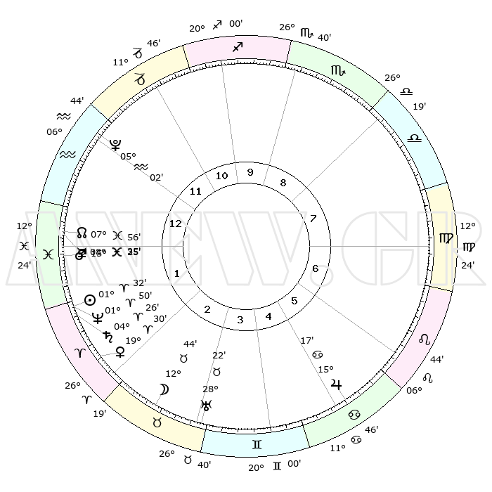 | | ΘΕΣΕΙΣ ΠΛΑΝΗΤΩΝ ΑΣΤΡΟΛΟΓΙΚΟΥ ΧΑΡΤΗ ΤΗΣ ΣΤΙΓΜΗΣ ΑΥΤΗΣ | | | | Πλανήτης | Ζώδιο | Μοίρες | Δεκαήμ. | Σε οίκο | Απόκλιση | | Ακμές των οίκων | | Ηλιος | Κριός | 01°28' | Πρώτο | 2 | 00 N 35 | | 1ος | 06°39' | Υδροχόος | | Σελήνη | Ταύρος | 11°44' | Δεύτερο | 3 | 19 N 47 | | 2ος | 21°41' | Ιχθείς | | Ερμής | Ιχθείς | 08°34' | Πρώτο | 1 | 07 S 43 | | 3ος | 29°00' | Κριός | | Αφροδίτη | Κριός | 19°25' | Δεύτερο | 2 | 06 N 50 | | 4ος | 26°22' | Ταύρος | | Αρης | Ιχθείς | 15°21' | Δεύτερο | 1 | 06 S 46 | | 5ος | 18°42' | Δίδυμοι | | Δίας | Καρκίνος | 15°17' | Δεύτερο | 6 | 22 N 55 | | 6ος | 10°25' | Καρκίνος | | Κρόνος | Κριός | 04°26' | Πρώτο | 2 | 00 S 12 | | 7ος | 06°39' | Λέων | | Ουρανός | Ταύρος | 28°22' | Τρίτο | 4 | 19 N 37 | | 8ος | 21°41' | Παρθένος | | Ποσειδώνας | Κριός | 01°50' | Πρώτο | 2 | 00 S 28 | | 9ος | 29°00' | Ζυγός | | Πλούτωνας | Υδροχόος | 05°02' | Πρώτο | 12 | 22 S 48 | | 10ος | 26°22' | Σκορπιός | | Β. Δεσμός | Ιχθείς | 07°56' | Πρώτο | 1 | 08 S 36 | | 11ος | 18°42' | Τοξότης | | Ωροσκόπος | Υδροχόος | 06°39' | Πρώτο | | | 12ος | 10°25' | Αιγόκερως | | Μεσουράνημα | Σκορπιός | 26°22' | Τρίτο | | | |