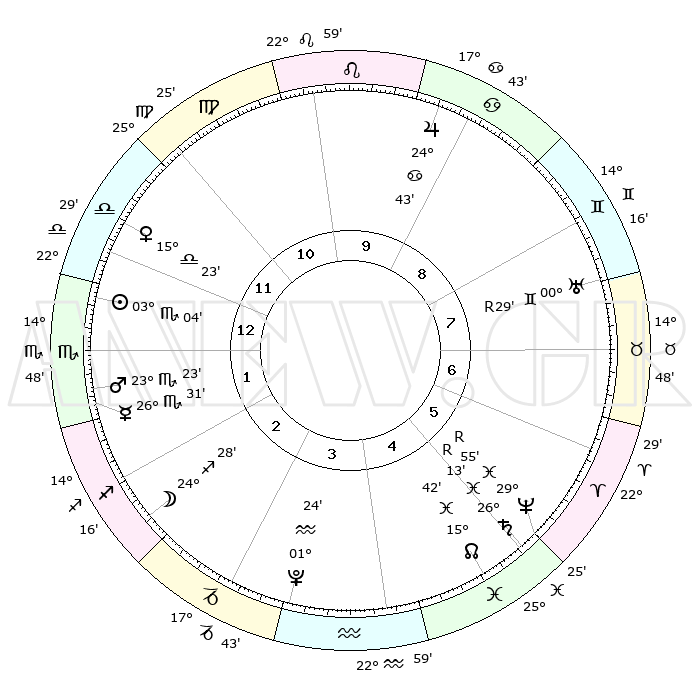 | | ΘΕΣΕΙΣ ΠΛΑΝΗΤΩΝ ΑΣΤΡΟΛΟΓΙΚΟΥ ΧΑΡΤΗ ΤΗΣ ΣΤΙΓΜΗΣ ΑΥΤΗΣ | | | | Πλανήτης | Ζώδιο | Μοίρες | Δεκαήμ. | Σε οίκο | Απόκλιση | | Ακμές των οίκων | | Ηλιος | Σκορπιός | 02°03' | Πρώτο | 12 | 12 S 11 | | 1ος | 06°22' | Σκορπιός | | Σελήνη | Τοξότης | 12°15' | Δεύτερο | 2 | 27 S 19 | | 2ος | 05°11' | Τοξότης | | Ερμής | Σκορπιός | 25°19' | Τρίτο | 1 | 21 S 39 | | 3ος | 07°42' | Αιγόκερως | | Αφροδίτη | Ζυγός | 14°06' | Δεύτερο | 12 | 04 S 09 | | 4ος | 12°21' | Υδροχόος | | Αρης | Σκορπιός | 22°40' | Τρίτο | 1 | 18 S 45 | | 5ος | 15°08' | Ιχθείς | | Δίας | Καρκίνος | 24°39' | Τρίτο | 9 | 21 N 15 | | 6ος | 13°11' | Κριός | | Κρόνος | Ιχθείς | 26°16'R | Τρίτο | 5 | 03 S 46 | | 7ος | 06°22' | Ταύρος | | Ουρανός | Δίδυμοι | 00°31'R | Πρώτο | 7 | 20 N 03 | | 8ος | 05°11' | Δίδυμοι | | Ποσειδώνας | Ιχθείς | 29°56'R | Τρίτο | 5 | 01 S 17 | | 9ος | 07°42' | Καρκίνος | | Πλούτωνας | Υδροχόος | 01°24' | Πρώτο | 3 | 23 S 32 | | 10ος | 12°21' | Λέων | | Β. Δεσμός | Ιχθείς | 15°46' | Δεύτερο | 5 | 05 S 37 | | 11ος | 15°08' | Παρθένος | | Ωροσκόπος | Σκορπιός | 06°22' | Πρώτο | | | 12ος | 13°11' | Ζυγός | | Μεσουράνημα | Λέων | 12°21' | Δεύτερο | | | |
