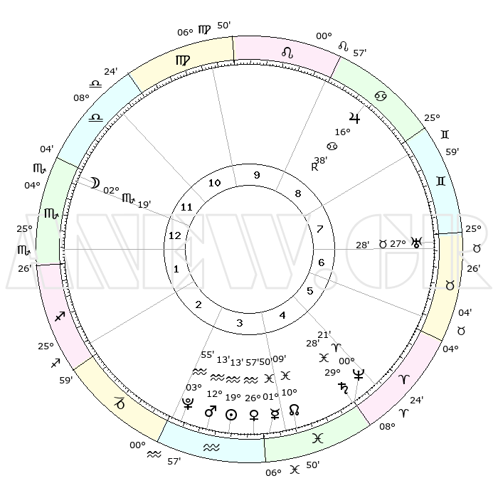 | | ΘΕΣΕΙΣ ΠΛΑΝΗΤΩΝ ΑΣΤΡΟΛΟΓΙΚΟΥ ΧΑΡΤΗ ΤΗΣ ΣΤΙΓΜΗΣ ΑΥΤΗΣ | | | | Πλανήτης | Ζώδιο | Μοίρες | Δεκαήμ. | Σε οίκο | Απόκλιση | | Ακμές των οίκων | | Ηλιος | Υδροχόος | 19°09' | Δεύτερο | 4 | 15 S 04 | | 1ος | 07°08' | Σκορπιός | | Σελήνη | Σκορπιός | 01°33' | Πρώτο | 12 | 15 S 55 | | 2ος | 05°60' | Τοξότης | | Ερμής | Ιχθείς | 01°43' | Πρώτο | 4 | 11 S 59 | | 3ος | 08°35' | Αιγόκερως | | Αφροδίτη | Υδροχόος | 26°53' | Τρίτο | 4 | 13 S 54 | | 4ος | 13°17' | Υδροχόος | | Αρης | Υδροχόος | 12°10' | Δεύτερο | 3 | 18 S 10 | | 5ος | 16°04' | Ιχθείς | | Δίας | Καρκίνος | 16°38'R | Δεύτερο | 9 | 22 N 43 | | 6ος | 14°01' | Κριός | | Κρόνος | Ιχθείς | 29°28' | Τρίτο | 5 | 02 S 12 | | 7ος | 07°08' | Ταύρος | | Ουρανός | Ταύρος | 27°28' | Τρίτο | 7 | 19 N 24 | | 8ος | 05°60' | Δίδυμοι | | Ποσειδώνας | Κριός | 00°21' | Πρώτο | 5 | 01 S 04 | | 9ος | 08°35' | Καρκίνος | | Πλούτωνας | Υδροχόος | 03°55' | Πρώτο | 3 | 22 S 59 | | 10ος | 13°17' | Λέων | | Β. Δεσμός | Ιχθείς | 10°10' | Δεύτερο | 4 | 07 S 45 | | 11ος | 16°04' | Παρθένος | | Ωροσκόπος | Σκορπιός | 07°08' | Πρώτο | | | 12ος | 14°01' | Ζυγός | | Μεσουράνημα | Λέων | 13°17' | Δεύτερο | | | |