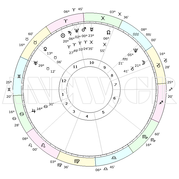 | | ΘΕΣΕΙΣ ΠΛΑΝΗΤΩΝ ΑΣΤΡΟΛΟΓΙΚΟΥ ΧΑΡΤΗ ΤΗΣ ΣΤΙΓΜΗΣ ΑΥΤΗΣ | | | | Πλανήτης | Ζώδιο | Μοίρες | Δεκαήμ. | Σε οίκο | Απόκλιση | | Ακμές των οίκων | | Ηλιος | Κριός | 20°23' | Τρίτο | 12 | 07 N 58 | | 1ος | 25°30' | Ταύρος | | Σελήνη | Αιγόκερως | 20°45' | Τρίτο | 9 | 25 S 35 | | 2ος | 21°16' | Δίδυμοι | | Ερμής | Ιχθείς | 23°30' | Τρίτο | 11 | 04 S 45 | | 3ος | 12°52' | Καρκίνος | | Αφροδίτη | Ταύρος | 12°60' | Δεύτερο | 12 | 15 N 42 | | 4ος | 05°20' | Λέων | | Αρης | Κριός | 00°20' | Πρώτο | 11 | 00 S 47 | | 5ος | 03°02' | Παρθένος | | Δίας | Καρκίνος | 16°30' | Δεύτερο | 3 | 22 N 47 | | 6ος | 10°44' | Ζυγός | | Κρόνος | Κριός | 06°48' | Πρώτο | 11 | 00 N 44 | | 7ος | 25°30' | Σκορπιός | | Ουρανός | Ταύρος | 29°11' | Τρίτο | 1 | 19 N 48 | | 8ος | 21°16' | Τοξότης | | Ποσειδώνας | Κριός | 02°33' | Πρώτο | 11 | 00 S 11 | | 9ος | 12°52' | Αιγόκερως | | Πλούτωνας | Υδροχόος | 05°21' | Πρώτο | 10 | 22 S 47 | | 10ος | 05°20' | Υδροχόος | | Β. Δεσμός | Ιχθείς | 06°55' | Πρώτο | 11 | 08 S 58 | | 11ος | 03°02' | Ιχθείς | | Ωροσκόπος | Ταύρος | 25°30' | Τρίτο | | | 12ος | 10°44' | Κριός | | Μεσουράνημα | Υδροχόος | 05°20' | Πρώτο | | | |