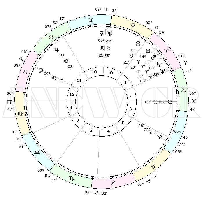 | | ΘΕΣΕΙΣ ΠΛΑΝΗΤΩΝ ΑΣΤΡΟΛΟΓΙΚΟΥ ΧΑΡΤΗ ΤΗΣ ΣΤΙΓΜΗΣ ΑΥΤΗΣ | | | | Πλανήτης | Ζώδιο | Μοίρες | Δεκαήμ. | Σε οίκο | Απόκλιση | | Ακμές των οίκων | | Ηλιος | Ταύρος | 04°17' | Πρώτο | 9 | 12 N 57 | | 1ος | 19°38' | Λέων | | Σελήνη | Λέων | 08°44' | Πρώτο | 12 | 20 N 26 | | 2ος | 12°24' | Παρθένος | | Ερμής | Κριός | 14°23' | Δεύτερο | 9 | 03 N 24 | | 3ος | 09°60' | Ζυγός | | Αφροδίτη | Δίδυμοι | 00°21' | Πρώτο | 10 | 20 N 49 | | 4ος | 12°39' | Σκορπιός | | Αρης | Κριός | 11°21' | Δεύτερο | 9 | 03 N 38 | | 5ος | 17°35' | Τοξότης | | Δίας | Καρκίνος | 18°03' | Δεύτερο | 11 | 22 N 36 | | 6ος | 20°31' | Αιγόκερως | | Κρόνος | Κριός | 08°31' | Πρώτο | 8 | 01 N 23 | | 7ος | 19°38' | Υδροχόος | | Ουρανός | Ταύρος | 29°55' | Τρίτο | 10 | 19 N 58 | | 8ος | 12°24' | Ιχθείς | | Ποσειδώνας | Κριός | 03°03' | Πρώτο | 8 | 00 N 00 | | 9ος | 09°60' | Κριός | | Πλούτωνας | Υδροχόος | 05°28' | Πρώτο | 6 | 22 S 48 | | 10ος | 12°39' | Ταύρος | | Β. Δεσμός | Ιχθείς | 06°10' | Πρώτο | 7 | 09 S 15 | | 11ος | 17°35' | Δίδυμοι | | Ωροσκόπος | Λέων | 19°38' | Δεύτερο | | | 12ος | 20°31' | Καρκίνος | | Μεσουράνημα | Ταύρος | 12°39' | Δεύτερο | | | |