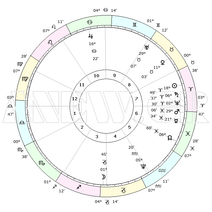 | | ΘΕΣΕΙΣ ΠΛΑΝΗΤΩΝ ΑΣΤΡΟΛΟΓΙΚΟΥ ΧΑΡΤΗ ΤΗΣ ΣΤΙΓΜΗΣ ΑΥΤΗΣ | | | | Πλανήτης | Ζώδιο | Μοίρες | Δεκαήμ. | Σε οίκο | Απόκλιση | | Ακμές των οίκων | | Ηλιος | Κριός | 18°46' | Δεύτερο | 8 | 07 N 21 | | 1ος | 16°47' | Παρθένος | | Σελήνη | Αιγόκερως | 01°04' | Πρώτο | 4 | 28 S 11 | | 2ος | 12°18' | Ζυγός | | Ερμής | Ιχθείς | 21°30' | Τρίτο | 7 | 05 S 25 | | 3ος | 12°09' | Σκορπιός | | Αφροδίτη | Ταύρος | 10°59' | Δεύτερο | 8 | 15 N 00 | | 4ος | 15°05' | Τοξότης | | Αρης | Ιχθείς | 29°03' | Τρίτο | 7 | 01 S 18 | | 5ος | 18°23' | Αιγόκερως | | Δίας | Καρκίνος | 16°21' | Δεύτερο | 10 | 22 N 48 | | 6ος | 19°20' | Υδροχόος | | Κρόνος | Κριός | 06°36' | Πρώτο | 7 | 00 N 39 | | 7ος | 16°47' | Ιχθείς | | Ουρανός | Ταύρος | 29°07' | Τρίτο | 9 | 19 N 47 | | 8ος | 12°18' | Κριός | | Ποσειδώνας | Κριός | 02°30' | Πρώτο | 7 | 00 S 13 | | 9ος | 12°09' | Ταύρος | | Πλούτωνας | Υδροχόος | 05°20' | Πρώτο | 5 | 22 S 47 | | 10ος | 15°05' | Δίδυμοι | | Β. Δεσμός | Ιχθείς | 07°00' | Πρώτο | 6 | 08 S 56 | | 11ος | 18°23' | Καρκίνος | | Ωροσκόπος | Παρθένος | 16°47' | Δεύτερο | | | 12ος | 19°20' | Λέων | | Μεσουράνημα | Δίδυμοι | 15°05' | Δεύτερο | | | |