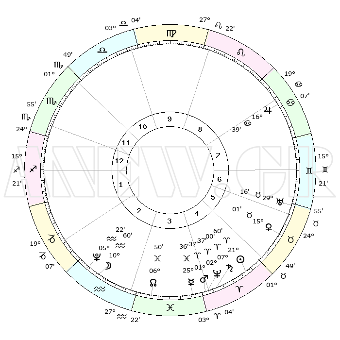 | | ΘΕΣΕΙΣ ΠΛΑΝΗΤΩΝ ΑΣΤΡΟΛΟΓΙΚΟΥ ΧΑΡΤΗ ΤΗΣ ΣΤΙΓΜΗΣ ΑΥΤΗΣ | | | | Πλανήτης | Ζώδιο | Μοίρες | Δεκαήμ. | Σε οίκο | Απόκλιση | | Ακμές των οίκων | | Ηλιος | Κριός | 21°56' | Τρίτο | 5 | 08 N 32 | | 1ος | 25°23' | Σκορπιός | | Σελήνη | Υδροχόος | 10°09' | Δεύτερο | 3 | 20 S 02 | | 2ος | 25°55' | Τοξότης | | Ερμής | Ιχθείς | 25°31' | Τρίτο | 4 | 04 S 02 | | 3ος | 00°52' | Υδροχόος | | Αφροδίτη | Ταύρος | 14°56' | Δεύτερο | 6 | 16 N 20 | | 4ος | 06°45' | Ιχθείς | | Αρης | Κριός | 01°34' | Πρώτο | 4 | 00 S 18 | | 5ος | 08°19' | Κριός | | Δίας | Καρκίνος | 16°39' | Δεύτερο | 8 | 22 N 46 | | 6ος | 04°00' | Ταύρος | | Κρόνος | Κριός | 06°60' | Πρώτο | 4 | 00 N 49 | | 7ος | 25°23' | Ταύρος | | Ουρανός | Ταύρος | 29°16' | Τρίτο | 7 | 19 N 49 | | 8ος | 25°55' | Δίδυμοι | | Ποσειδώνας | Κριός | 02°37' | Πρώτο | 4 | 00 S 10 | | 9ος | 00°52' | Λέων | | Πλούτωνας | Υδροχόος | 05°22' | Πρώτο | 3 | 22 S 47 | | 10ος | 06°45' | Παρθένος | | Β. Δεσμός | Ιχθείς | 06°50' | Πρώτο | 4 | 09 S 00 | | 11ος | 08°19' | Ζυγός | | Ωροσκόπος | Σκορπιός | 25°23' | Τρίτο | | | 12ος | 04°00' | Σκορπιός | | Μεσουράνημα | Παρθένος | 06°45' | Πρώτο | | | |