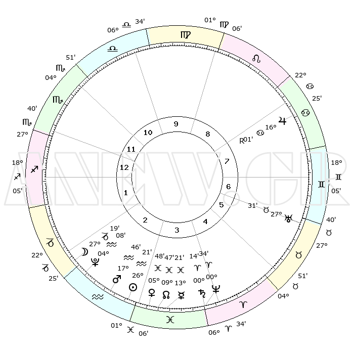 | | ΘΕΣΕΙΣ ΠΛΑΝΗΤΩΝ ΑΣΤΡΟΛΟΓΙΚΟΥ ΧΑΡΤΗ ΤΗΣ ΣΤΙΓΜΗΣ ΑΥΤΗΣ | | | | Πλανήτης | Ζώδιο | Μοίρες | Δεκαήμ. | Σε οίκο | Απόκλιση | | Ακμές των οίκων | | Ηλιος | Υδροχόος | 26°18' | Τρίτο | 3 | 12 S 45 | | 1ος | 29°35' | Σκορπιός | | Σελήνη | Αιγόκερως | 26°33' | Τρίτο | 2 | 24 S 20 | | 2ος | 00°40' | Αιγόκερως | | Ερμής | Ιχθείς | 13°15' | Δεύτερο | 4 | 06 S 32 | | 3ος | 06°18' | Υδροχόος | | Αφροδίτη | Ιχθείς | 05°43' | Πρώτο | 3 | 10 S 47 | | 4ος | 12°20' | Ιχθείς | | Αρης | Υδροχόος | 17°43' | Δεύτερο | 3 | 16 S 33 | | 5ος | 13°25' | Κριός | | Δίας | Καρκίνος | 16°02'R | Δεύτερο | 8 | 22 N 48 | | 6ος | 08°31' | Ταύρος | | Κρόνος | Κριός | 00°13' | Πρώτο | 4 | 01 S 53 | | 7ος | 29°35' | Ταύρος | | Ουρανός | Ταύρος | 27°31' | Τρίτο | 6 | 19 N 25 | | 8ος | 00°40' | Καρκίνος | | Ποσειδώνας | Κριός | 00°34' | Πρώτο | 4 | 00 S 59 | | 9ος | 06°18' | Λέων | | Πλούτωνας | Υδροχόος | 04°08' | Πρώτο | 2 | 22 S 57 | | 10ος | 12°20' | Παρθένος | | Β. Δεσμός | Ιχθείς | 09°47' | Πρώτο | 3 | 07 S 54 | | 11ος | 13°25' | Ζυγός | | Ωροσκόπος | Σκορπιός | 29°35' | Τρίτο | | | 12ος | 08°32' | Σκορπιός | | Μεσουράνημα | Παρθένος | 12°20' | Δεύτερο | | | |