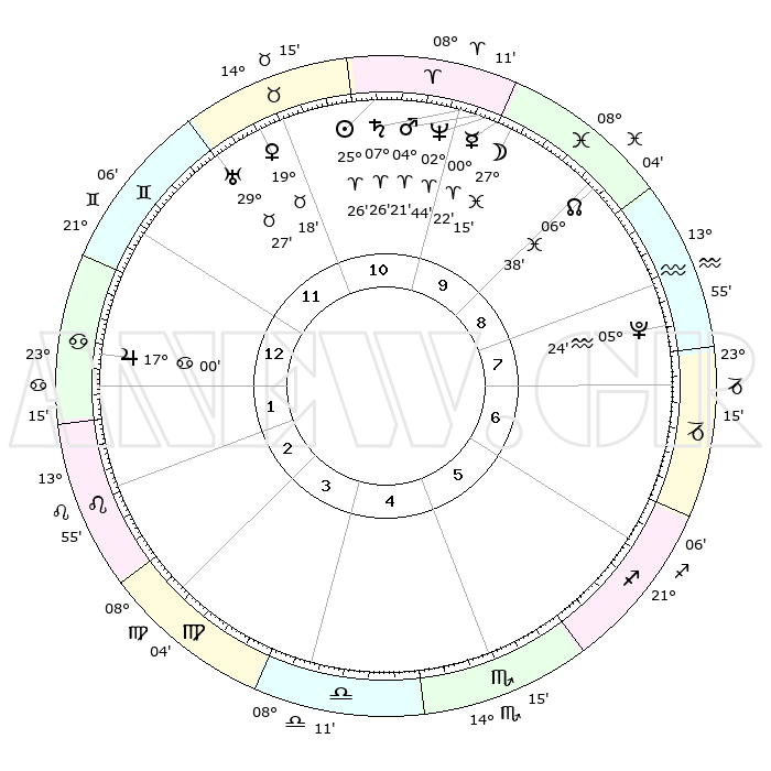 | | ΘΕΣΕΙΣ ΠΛΑΝΗΤΩΝ ΑΣΤΡΟΛΟΓΙΚΟΥ ΧΑΡΤΗ ΤΗΣ ΣΤΙΓΜΗΣ ΑΥΤΗΣ | | | | Πλανήτης | Ζώδιο | Μοίρες | Δεκαήμ. | Σε οίκο | Απόκλιση | | Ακμές των οίκων | | Ηλιος | Κριός | 25°21' | Τρίτο | 11 | 09 N 48 | | 1ος | 24°32' | Δίδυμοι | | Σελήνη | Ιχθείς | 25°59' | Τρίτο | 10 | 00 S 09 | | 2ος | 15°44' | Καρκίνος | | Ερμής | Κριός | 00°14'R | Πρώτο | 10 | 02 S 18 | | 3ος | 07°14' | Λέων | | Αφροδίτη | Ταύρος | 19°12' | Δεύτερο | 12 | 17 N 42 | | 4ος | 02°43' | Παρθένος | | Αρης | Κριός | 04°16' | Πρώτο | 10 | 00 N 48 | | 5ος | 05°44' | Ζυγός | | Δίας | Καρκίνος | 16°60' | Δεύτερο | 2 | 22 N 44 | | 6ος | 15°60' | Σκορπιός | | Κρόνος | Κριός | 07°25' | Πρώτο | 11 | 00 N 58 | | 7ος | 24°32' | Τοξότης | | Ουρανός | Ταύρος | 29°26' | Τρίτο | 12 | 19 N 52 | | 8ος | 15°44' | Αιγόκερως | | Ποσειδώνας | Κριός | 02°44' | Πρώτο | 10 | 00 S 07 | | 9ος | 07°14' | Υδροχόος | | Πλούτωνας | Υδροχόος | 05°24' | Πρώτο | 8 | 22 S 47 | | 10ος | 02°43' | Ιχθείς | | Β. Δεσμός | Ιχθείς | 06°39' | Πρώτο | 10 | 09 S 04 | | 11ος | 05°44' | Κριός | | Ωροσκόπος | Δίδυμοι | 24°32' | Τρίτο | | | 12ος | 15°60' | Ταύρος | | Μεσουράνημα | Ιχθείς | 02°43' | Πρώτο | | | |
