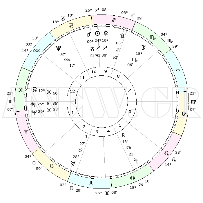 | | ΘΕΣΕΙΣ ΠΛΑΝΗΤΩΝ ΑΣΤΡΟΛΟΓΙΚΟΥ ΧΑΡΤΗ ΤΗΣ ΣΤΙΓΜΗΣ ΑΥΤΗΣ | | | | Πλανήτης | Ζώδιο | Μοίρες | Δεκαήμ. | Σε οίκο | Απόκλιση | | Ακμές των οίκων | | Ηλιος | Τοξότης | 24°20' | Τρίτο | 2 | 23 S 19 | | 1ος | 02°50' | Σκορπιός | | Σελήνη | Σκορπιός | 10°40' | Δεύτερο | 1 | 19 S 03 | | 2ος | 01°25' | Τοξότης | | Ερμής | Τοξότης | 05°22' | Πρώτο | 2 | 19 S 48 | | 3ος | 03°36' | Αιγόκερως | | Αφροδίτη | Τοξότης | 19°09' | Δεύτερο | 2 | 22 S 52 | | 4ος | 07°60' | Υδροχόος | | Αρης | Αιγόκερως | 00°34' | Πρώτο | 2 | 24 S 13 | | 5ος | 10°52' | Ιχθείς | | Δίας | Καρκίνος | 23°15'R | Τρίτο | 9 | 21 N 38 | | 6ος | 09°17' | Κριός | | Κρόνος | Ιχθείς | 25°34' | Τρίτο | 5 | 03 S 53 | | 7ος | 02°50' | Ταύρος | | Ουρανός | Ταύρος | 28°27'R | Τρίτο | 7 | 19 N 37 | | 8ος | 01°25' | Δίδυμοι | | Ποσειδώνας | Ιχθείς | 29°23' | Τρίτο | 5 | 01 S 29 | | 9ος | 03°36' | Καρκίνος | | Πλούτωνας | Υδροχόος | 02°16' | Πρώτο | 3 | 23 S 19 | | 10ος | 07°60' | Λέων | | Β. Δεσμός | Ιχθείς | 13°01' | Δεύτερο | 5 | 06 S 40 | | 11ος | 10°52' | Παρθένος | | Ωροσκόπος | Σκορπιός | 02°50' | Πρώτο | | | 12ος | 09°17' | Ζυγός | | Μεσουράνημα | Λέων | 07°60' | Πρώτο | | | |