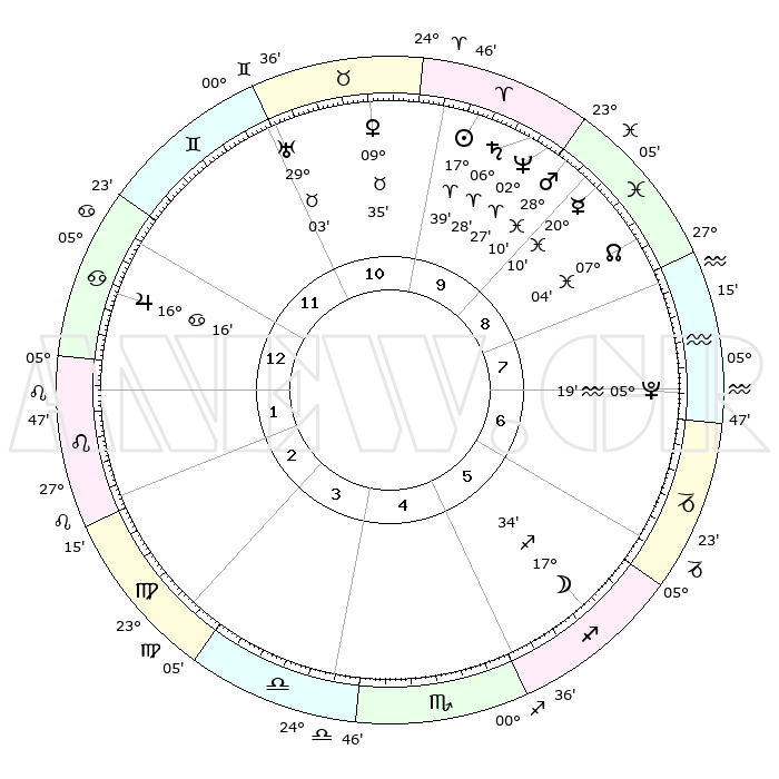 | | ΘΕΣΕΙΣ ΠΛΑΝΗΤΩΝ ΑΣΤΡΟΛΟΓΙΚΟΥ ΧΑΡΤΗ ΤΗΣ ΣΤΙΓΜΗΣ ΑΥΤΗΣ | | | | Πλανήτης | Ζώδιο | Μοίρες | Δεκαήμ. | Σε οίκο | Απόκλιση | | Ακμές των οίκων | | Ηλιος | Κριός | 17°35' | Δεύτερο | 10 | 06 N 54 | | 1ος | 19°01' | Καρκίνος | | Σελήνη | Τοξότης | 16°53' | Δεύτερο | 6 | 27 S 52 | | 2ος | 09°31' | Λέων | | Ερμής | Ιχθείς | 20°06' | Τρίτο | 9 | 05 S 52 | | 3ος | 03°09' | Παρθένος | | Αφροδίτη | Ταύρος | 09°31' | Πρώτο | 11 | 14 N 30 | | 4ος | 02°36' | Ζυγός | | Αρης | Ιχθείς | 28°07' | Τρίτο | 9 | 01 S 41 | | 5ος | 08°33' | Σκορπιός | | Δίας | Καρκίνος | 16°15' | Δεύτερο | 12 | 22 N 49 | | 6ος | 16°06' | Τοξότης | | Κρόνος | Κριός | 06°27' | Πρώτο | 10 | 00 N 36 | | 7ος | 19°01' | Αιγόκερως | | Ουρανός | Ταύρος | 29°03' | Τρίτο | 11 | 19 N 47 | | 8ος | 09°31' | Υδροχόος | | Ποσειδώνας | Κριός | 02°27' | Πρώτο | 9 | 00 S 14 | | 9ος | 03°09' | Ιχθείς | | Πλούτωνας | Υδροχόος | 05°19' | Πρώτο | 7 | 22 S 47 | | 10ος | 02°36' | Κριός | | Β. Δεσμός | Ιχθείς | 07°04' | Πρώτο | 9 | 08 S 55 | | 11ος | 08°33' | Ταύρος | | Ωροσκόπος | Καρκίνος | 19°01' | Δεύτερο | | | 12ος | 16°06' | Δίδυμοι | | Μεσουράνημα | Κριός | 02°36' | Πρώτο | | | |