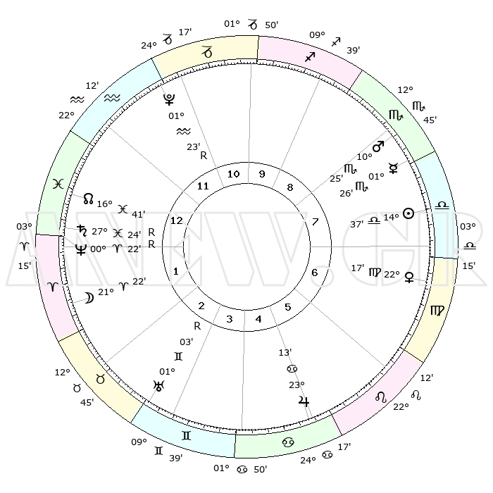 | ΘΕΣΕΙΣ ΠΛΑΝΗΤΩΝ ΑΣΤΡΟΛΟΓΙΚΟΥ ΧΑΡΤΗ ΤΗΣ ΣΤΙΓΜΗΣ ΑΥΤΗΣ | | Πλανήτης | Ζώδιο | Μοίρες | Δεκαήμ. | Σε οίκο | Απόκλιση | | Ακμές των οίκων | Ηλιος | Ζυγός | 14°32' | Δεύτερο | 8 | 05 S 44 | | 1ος | 12°33' | Υδροχόος | Σελήνη | Κριός | 19°59' | Δεύτερο | 2 | 10 N 22 | | 2ος | 28°06' | Ιχθείς | Ερμής | Σκορπιός | 01°18' | Πρώτο | 8 | 12 S 45 | | 3ος | 04°18' | Ταύρος | Αφροδίτη | Παρθένος | 22°10' | Τρίτο | 7 | 04 N 25 | | 4ος | 00°48' | Δίδυμοι | Αρης | Σκορπιός | 10°21' | Δεύτερο | 9 | 15 S 04 | | 5ος | 22°51' | Δίδυμοι | Δίας | Καρκίνος | 23°13' | Τρίτο | 6 | 21 N 28 | | 6ος | 14°55' | Καρκίνος | Κρόνος | Ιχθείς | 27°24'R | Τρίτο | 1 | 03 S 20 | | 7ος | 12°33' | Λέων | Ουρανός | Δίδυμοι | 01°03'R | Πρώτο | 4 | 20 N 10 | | 8ος | 28°06' | Παρθένος | Ποσειδώνας | Κριός | 00°22'R | Πρώτο | 2 | 01 S 07 | | 9ος | 04°18' | Σκορπιός | Πλούτωνας | Υδροχόος | 01°23'R | Πρώτο | 12 | 23 S 32 | | 10ος | 00°48' | Τοξότης | Β. Δεσμός | Ιχθείς | 16°42' | Δεύτερο | 1 | 05 S 15 | | 11ος | 22°51' | Τοξότης | Ωροσκόπος | Υδροχόος | 12°33' | Δεύτερο | | | 12ος | 14°55' | Αιγόκερως | Μεσουράνημα | Τοξότης | 00°48' | Πρώτο | | | |