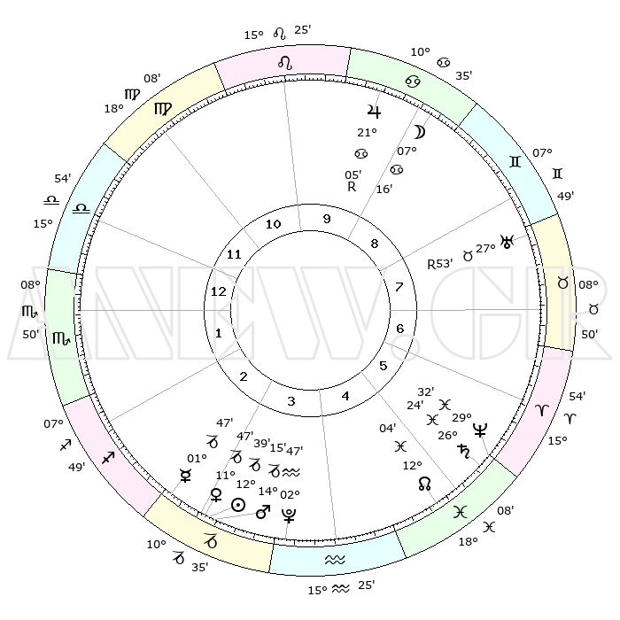 | | ΘΕΣΕΙΣ ΠΛΑΝΗΤΩΝ ΑΣΤΡΟΛΟΓΙΚΟΥ ΧΑΡΤΗ ΤΗΣ ΣΤΙΓΜΗΣ ΑΥΤΗΣ | | | | Πλανήτης | Ζώδιο | Μοίρες | Δεκαήμ. | Σε οίκο | Απόκλιση | | Ακμές των οίκων | | Ηλιος | Αιγόκερως | 12°34' | Δεύτερο | 3 | 22 S 50 | | 1ος | 19°00' | Ζυγός | | Σελήνη | Καρκίνος | 06°15' | Πρώτο | 9 | 27 N 51 | | 2ος | 16°47' | Σκορπιός | | Ερμής | Αιγόκερως | 01°40' | Πρώτο | 3 | 24 S 12 | | 3ος | 18°02' | Τοξότης | | Αφροδίτη | Αιγόκερως | 11°41' | Δεύτερο | 3 | 23 S 30 | | 4ος | 21°34' | Αιγόκερως | | Αρης | Αιγόκερως | 14°12' | Δεύτερο | 3 | 23 S 34 | | 5ος | 24°31' | Υδροχόος | | Δίας | Καρκίνος | 21°06'R | Τρίτο | 9 | 22 N 01 | | 6ος | 24°02' | Ιχθείς | | Κρόνος | Ιχθείς | 26°24' | Τρίτο | 6 | 03 S 30 | | 7ος | 19°00' | Κριός | | Ουρανός | Ταύρος | 27°54'R | Τρίτο | 8 | 19 N 30 | | 8ος | 16°47' | Ταύρος | | Ποσειδώνας | Ιχθείς | 29°32' | Τρίτο | 6 | 01 S 24 | | 9ος | 18°02' | Δίδυμοι | | Πλούτωνας | Υδροχόος | 02°47' | Πρώτο | 4 | 23 S 12 | | 10ος | 21°34' | Καρκίνος | | Β. Δεσμός | Ιχθείς | 12°04' | Δεύτερο | 5 | 07 S 02 | | 11ος | 24°31' | Λέων | | Ωροσκόπος | Ζυγός | 19°00' | Δεύτερο | | | 12ος | 24°02' | Παρθένος | | Μεσουράνημα | Καρκίνος | 21°34' | Τρίτο | | | |