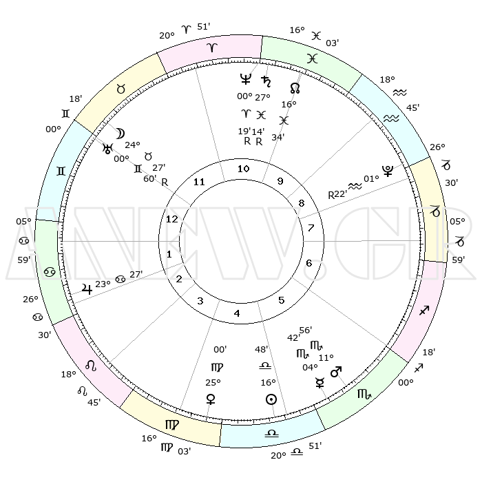 | ΘΕΣΕΙΣ ΠΛΑΝΗΤΩΝ ΑΣΤΡΟΛΟΓΙΚΟΥ ΧΑΡΤΗ ΤΗΣ ΣΤΙΓΜΗΣ ΑΥΤΗΣ | | Πλανήτης | Ζώδιο | Μοίρες | Δεκαήμ. | Σε οίκο | Απόκλιση | | Ακμές των οίκων | Ηλιος | Ζυγός | 16°36' | Δεύτερο | 7 | 06 S 31 | | 1ος | 07°17' | Κριός | Σελήνη | Ταύρος | 21°26' | Τρίτο | 2 | 22 N 36 | | 2ος | 15°45' | Ταύρος | Ερμής | Σκορπιός | 04°24' | Πρώτο | 7 | 14 S 03 | | 3ος | 12°04' | Δίδυμοι | Αφροδίτη | Παρθένος | 24°45' | Τρίτο | 6 | 03 N 25 | | 4ος | 04°06' | Καρκίνος | Αρης | Σκορπιός | 11°48' | Δεύτερο | 7 | 15 S 32 | | 5ος | 26°46' | Καρκίνος | Δίας | Καρκίνος | 23°26' | Τρίτο | 4 | 21 N 26 | | 6ος | 25°20' | Λέων | Κρόνος | Ιχθείς | 27°15'R | Τρίτο | 12 | 03 S 24 | | 7ος | 07°17' | Ζυγός | Ουρανός | Δίδυμοι | 01°00'R | Πρώτο | 2 | 20 N 09 | | 8ος | 15°45' | Σκορπιός | Ποσειδώνας | Κριός | 00°19'R | Πρώτο | 12 | 01 S 08 | | 9ος | 12°04' | Τοξότης | Πλούτωνας | Υδροχόος | 01°22'R | Πρώτο | 11 | 23 S 32 | | 10ος | 04°06' | Αιγόκερως | Β. Δεσμός | Ιχθείς | 16°35' | Δεύτερο | 12 | 05 S 18 | | 11ος | 26°46' | Αιγόκερως | Ωροσκόπος | Κριός | 07°17' | Πρώτο | | | 12ος | 25°20' | Υδροχόος | Μεσουράνημα | Αιγόκερως | 04°06' | Πρώτο | | | |