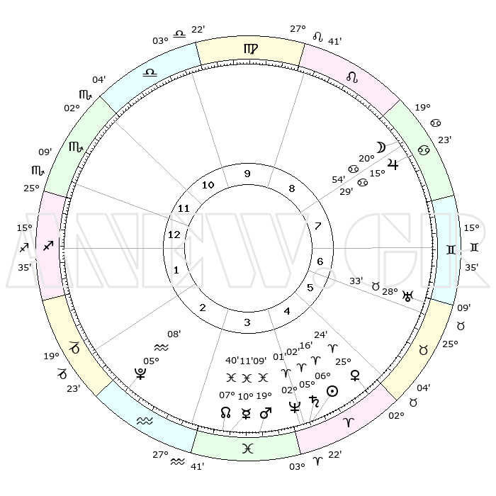 | | ΘΕΣΕΙΣ ΠΛΑΝΗΤΩΝ ΑΣΤΡΟΛΟΓΙΚΟΥ ΧΑΡΤΗ ΤΗΣ ΣΤΙΓΜΗΣ ΑΥΤΗΣ | | | | Πλανήτης | Ζώδιο | Μοίρες | Δεκαήμ. | Σε οίκο | Απόκλιση | | Ακμές των οίκων | | Ηλιος | Κριός | 06°13' | Πρώτο | 4 | 02 N 28 | | 1ος | 27°37' | Σκορπιός | | Σελήνη | Καρκίνος | 20°03' | Τρίτο | 8 | 25 N 49 | | 2ος | 28°26' | Τοξότης | | Ερμής | Ιχθείς | 10°09' | Δεύτερο | 4 | 08 S 07 | | 3ος | 03°45' | Υδροχόος | | Αφροδίτη | Κριός | 25°20' | Τρίτο | 5 | 09 N 12 | | 4ος | 09°43' | Ιχθείς | | Αρης | Ιχθείς | 19°07' | Δεύτερο | 4 | 05 S 17 | | 5ος | 11°03' | Κριός | | Δίας | Καρκίνος | 15°29' | Δεύτερο | 8 | 22 N 54 | | 6ος | 06°25' | Ταύρος | | Κρόνος | Κριός | 05°01' | Πρώτο | 4 | 00 N 03 | | 7ος | 27°37' | Ταύρος | | Ουρανός | Ταύρος | 28°33' | Τρίτο | 7 | 19 N 40 | | 8ος | 28°26' | Δίδυμοι | | Ποσειδώνας | Κριός | 02°01' | Πρώτο | 4 | 00 S 24 | | 9ος | 03°45' | Λέων | | Πλούτωνας | Υδροχόος | 05°08' | Πρώτο | 3 | 22 S 48 | | 10ος | 09°43' | Παρθένος | | Β. Δεσμός | Ιχθείς | 07°41' | Πρώτο | 3 | 08 S 41 | | 11ος | 11°03' | Ζυγός | | Ωροσκόπος | Σκορπιός | 27°37' | Τρίτο | | | 12ος | 06°25' | Σκορπιός | | Μεσουράνημα | Παρθένος | 09°43' | Πρώτο | | | |