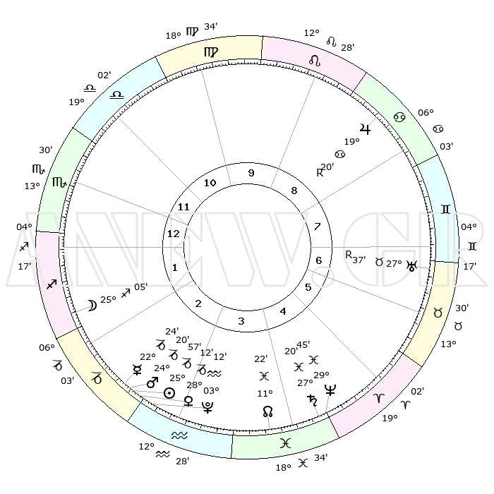 | | ΘΕΣΕΙΣ ΠΛΑΝΗΤΩΝ ΑΣΤΡΟΛΟΓΙΚΟΥ ΧΑΡΤΗ ΤΗΣ ΣΤΙΓΜΗΣ ΑΥΤΗΣ | | | | Πλανήτης | Ζώδιο | Μοίρες | Δεκαήμ. | Σε οίκο | Απόκλιση | | Ακμές των οίκων | | Ηλιος | Αιγόκερως | 25°52' | Τρίτο | 3 | 20 S 58 | | 1ος | 13°04' | Σκορπιός | | Σελήνη | Τοξότης | 24°12' | Τρίτο | 2 | 28 S 16 | | 2ος | 12°23' | Τοξότης | | Ερμής | Αιγόκερως | 22°17' | Τρίτο | 3 | 23 S 24 | | 3ος | 15°38' | Αιγόκερως | | Αφροδίτη | Αιγόκερως | 28°06' | Τρίτο | 3 | 21 S 31 | | 4ος | 20°46' | Υδροχόος | | Αρης | Αιγόκερως | 24°16' | Τρίτο | 3 | 22 S 13 | | 5ος | 23°18' | Ιχθείς | | Δίας | Καρκίνος | 19°21'R | Δεύτερο | 9 | 22 N 19 | | 6ος | 20°35' | Κριός | | Κρόνος | Ιχθείς | 27°20' | Τρίτο | 5 | 03 S 06 | | 7ος | 13°04' | Ταύρος | | Ουρανός | Ταύρος | 27°37'R | Τρίτο | 7 | 19 N 26 | | 8ος | 12°23' | Δίδυμοι | | Ποσειδώνας | Ιχθείς | 29°45' | Τρίτο | 5 | 01 S 19 | | 9ος | 15°38' | Καρκίνος | | Πλούτωνας | Υδροχόος | 03°11' | Πρώτο | 3 | 23 S 07 | | 10ος | 20°46' | Λέων | | Β. Δεσμός | Ιχθείς | 11°22' | Δεύτερο | 4 | 07 S 18 | | 11ος | 23°18' | Παρθένος | | Ωροσκόπος | Σκορπιός | 13°04' | Δεύτερο | | | 12ος | 20°35' | Ζυγός | | Μεσουράνημα | Λέων | 20°46' | Τρίτο | | | |