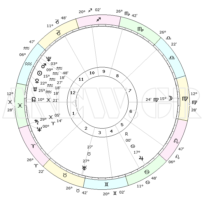 | | ΘΕΣΕΙΣ ΠΛΑΝΗΤΩΝ ΑΣΤΡΟΛΟΓΙΚΟΥ ΧΑΡΤΗ ΤΗΣ ΣΤΙΓΜΗΣ ΑΥΤΗΣ | | | | Πλανήτης | Ζώδιο | Μοίρες | Δεκαήμ. | Σε οίκο | Απόκλιση | | Ακμές των οίκων | | Ηλιος | Υδροχόος | 15°24' | Δεύτερο | 12 | 16 S 13 | | 1ος | 15°29' | Υδροχόος | | Σελήνη | Παρθένος | 14°44' | Δεύτερο | 7 | 05 N 32 | | 2ος | 01°12' | Κριός | | Ερμής | Υδροχόος | 25°12' | Τρίτο | 1 | 14 S 39 | | 3ος | 06°50' | Ταύρος | | Αφροδίτη | Υδροχόος | 22°14' | Τρίτο | 1 | 15 S 25 | | 4ος | 02°55' | Δίδυμοι | | Αρης | Υδροχόος | 09°16' | Πρώτο | 12 | 18 S 57 | | 5ος | 24°51' | Δίδυμοι | | Δίας | Καρκίνος | 17°00'R | Δεύτερο | 5 | 22 N 40 | | 6ος | 17°08' | Καρκίνος | | Κρόνος | Ιχθείς | 29°05' | Τρίτο | 1 | 02 S 21 | | 7ος | 15°29' | Λέων | | Ουρανός | Ταύρος | 27°27' | Τρίτο | 3 | 19 N 24 | | 8ος | 01°12' | Ζυγός | | Ποσειδώνας | Κριός | 00°14' | Πρώτο | 1 | 01 S 07 | | 9ος | 06°50' | Σκορπιός | | Πλούτωνας | Υδροχόος | 03°48' | Πρώτο | 12 | 23 S 00 | | 10ος | 02°55' | Τοξότης | | Β. Δεσμός | Ιχθείς | 10°21' | Δεύτερο | 1 | 07 S 41 | | 11ος | 24°51' | Τοξότης | | Ωροσκόπος | Υδροχόος | 15°29' | Δεύτερο | | | 12ος | 17°08' | Αιγόκερως | | Μεσουράνημα | Τοξότης | 02°55' | Πρώτο | | | |