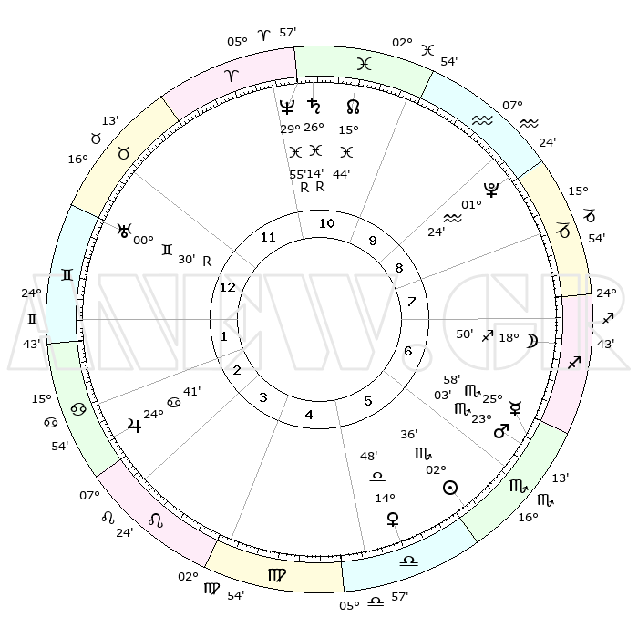 | | ΘΕΣΕΙΣ ΠΛΑΝΗΤΩΝ ΑΣΤΡΟΛΟΓΙΚΟΥ ΧΑΡΤΗ ΤΗΣ ΣΤΙΓΜΗΣ ΑΥΤΗΣ | | | | Πλανήτης | Ζώδιο | Μοίρες | Δεκαήμ. | Σε οίκο | Απόκλιση | | Ακμές των οίκων | | Ηλιος | Σκορπιός | 02°10' | Πρώτο | 11 | 12 S 13 | | 1ος | 10°37' | Τοξότης | | Σελήνη | Τοξότης | 13°39' | Δεύτερο | 1 | 27 S 31 | | 2ος | 13°28' | Αιγόκερως | | Ερμής | Σκορπιός | 25°28' | Τρίτο | 12 | 21 S 41 | | 3ος | 20°57' | Υδροχόος | | Αφροδίτη | Ζυγός | 14°15' | Δεύτερο | 10 | 04 S 12 | | 4ος | 26°55' | Ιχθείς | | Αρης | Σκορπιός | 22°45' | Τρίτο | 12 | 18 S 46 | | 5ος | 26°26' | Κριός | | Δίας | Καρκίνος | 24°40' | Τρίτο | 8 | 21 N 15 | | 6ος | 20°06' | Ταύρος | | Κρόνος | Ιχθείς | 26°16'R | Τρίτο | 3 | 03 S 46 | | 7ος | 10°37' | Δίδυμοι | | Ουρανός | Δίδυμοι | 00°31'R | Πρώτο | 6 | 20 N 03 | | 8ος | 13°28' | Καρκίνος | | Ποσειδώνας | Ιχθείς | 29°56'R | Τρίτο | 4 | 01 S 17 | | 9ος | 20°57' | Λέων | | Πλούτωνας | Υδροχόος | 01°24' | Πρώτο | 2 | 23 S 32 | | 10ος | 26°55' | Παρθένος | | Β. Δεσμός | Ιχθείς | 15°45' | Δεύτερο | 3 | 05 S 37 | | 11ος | 26°26' | Ζυγός | | Ωροσκόπος | Τοξότης | 10°37' | Δεύτερο | | | 12ος | 20°06' | Σκορπιός | | Μεσουράνημα | Παρθένος | 26°55' | Τρίτο | | | |