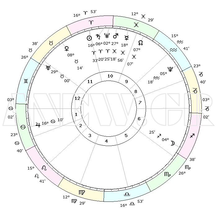 | | ΘΕΣΕΙΣ ΠΛΑΝΗΤΩΝ ΑΣΤΡΟΛΟΓΙΚΟΥ ΧΑΡΤΗ ΤΗΣ ΣΤΙΓΜΗΣ ΑΥΤΗΣ | | | | Πλανήτης | Ζώδιο | Μοίρες | Δεκαήμ. | Σε οίκο | Απόκλιση | | Ακμές των οίκων | | Ηλιος | Κριός | 16°30' | Δεύτερο | 11 | 06 N 29 | | 1ος | 12°08' | Δίδυμοι | | Σελήνη | Τοξότης | 03°42' | Πρώτο | 6 | 25 S 56 | | 2ος | 04°48' | Καρκίνος | | Ερμής | Ιχθείς | 18°52' | Δεύτερο | 10 | 06 S 15 | | 3ος | 26°00' | Καρκίνος | | Αφροδίτη | Ταύρος | 08°09' | Πρώτο | 12 | 14 N 01 | | 4ος | 19°53' | Λέων | | Αρης | Ιχθείς | 27°16' | Τρίτο | 11 | 02 S 02 | | 5ος | 20°34' | Παρθένος | | Δίας | Καρκίνος | 16°10' | Δεύτερο | 2 | 22 N 50 | | 6ος | 00°29' | Σκορπιός | | Κρόνος | Κριός | 06°19' | Πρώτο | 11 | 00 N 33 | | 7ος | 12°08' | Τοξότης | | Ουρανός | Ταύρος | 29°00' | Τρίτο | 12 | 19 N 46 | | 8ος | 04°48' | Αιγόκερως | | Ποσειδώνας | Κριός | 02°24' | Πρώτο | 11 | 00 S 15 | | 9ος | 26°00' | Αιγόκερως | | Πλούτωνας | Υδροχόος | 05°18' | Πρώτο | 9 | 22 S 47 | | 10ος | 19°53' | Υδροχόος | | Β. Δεσμός | Ιχθείς | 07°07' | Πρώτο | 10 | 08 S 54 | | 11ος | 20°34' | Ιχθείς | | Ωροσκόπος | Δίδυμοι | 12°08' | Δεύτερο | | | 12ος | 00°29' | Ταύρος | | Μεσουράνημα | Υδροχόος | 19°53' | Δεύτερο | | | |