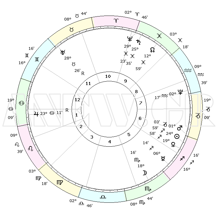 | | ΘΕΣΕΙΣ ΠΛΑΝΗΤΩΝ ΑΣΤΡΟΛΟΓΙΚΟΥ ΧΑΡΤΗ ΤΗΣ ΣΤΙΓΜΗΣ ΑΥΤΗΣ | | | | Πλανήτης | Ζώδιο | Μοίρες | Δεκαήμ. | Σε οίκο | Απόκλιση | | Ακμές των οίκων | | Ηλιος | Τοξότης | 24°40' | Τρίτο | 10 | 23 S 20 | | 1ος | 22°13' | Υδροχόος | | Σελήνη | Σκορπιός | 14°27' | Δεύτερο | 9 | 20 S 23 | | 2ος | 08°01' | Κριός | | Ερμής | Τοξότης | 05°48' | Πρώτο | 9 | 19 S 56 | | 3ος | 12°17' | Ταύρος | | Αφροδίτη | Τοξότης | 19°33' | Δεύτερο | 10 | 22 S 55 | | 4ος | 07°31' | Δίδυμοι | | Αρης | Αιγόκερως | 00°49' | Πρώτο | 11 | 24 S 13 | | 5ος | 29°18' | Δίδυμοι | | Δίας | Καρκίνος | 23°13'R | Τρίτο | 6 | 21 N 38 | | 6ος | 22°07' | Καρκίνος | | Κρόνος | Ιχθείς | 25°35' | Τρίτο | 1 | 03 S 53 | | 7ος | 22°13' | Λέων | | Ουρανός | Ταύρος | 28°27'R | Τρίτο | 3 | 19 N 37 | | 8ος | 08°01' | Ζυγός | | Ποσειδώνας | Ιχθείς | 29°23' | Τρίτο | 1 | 01 S 29 | | 9ος | 12°17' | Σκορπιός | | Πλούτωνας | Υδροχόος | 02°17' | Πρώτο | 12 | 23 S 19 | | 10ος | 07°31' | Τοξότης | | Β. Δεσμός | Ιχθείς | 12°60' | Δεύτερο | 1 | 06 S 41 | | 11ος | 29°18' | Τοξότης | | Ωροσκόπος | Υδροχόος | 22°13' | Τρίτο | | | 12ος | 22°07' | Αιγόκερως | | Μεσουράνημα | Τοξότης | 07°31' | Πρώτο | | | |