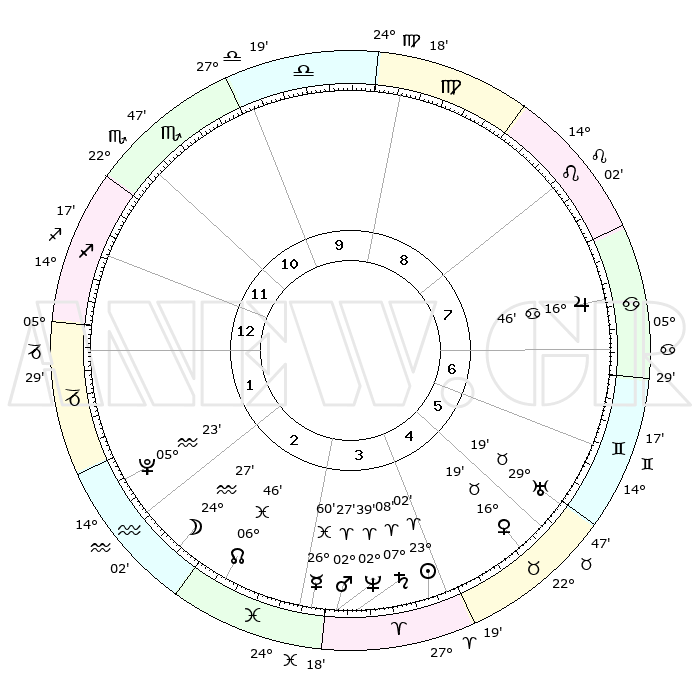 | | ΘΕΣΕΙΣ ΠΛΑΝΗΤΩΝ ΑΣΤΡΟΛΟΓΙΚΟΥ ΧΑΡΤΗ ΤΗΣ ΣΤΙΓΜΗΣ ΑΥΤΗΣ | | | | Πλανήτης | Ζώδιο | Μοίρες | Δεκαήμ. | Σε οίκο | Απόκλιση | | Ακμές των οίκων | | Ηλιος | Κριός | 22°58' | Τρίτο | 4 | 08 N 56 | | 1ος | 14°29' | Τοξότης | | Σελήνη | Υδροχόος | 23°36' | Τρίτο | 2 | 14 S 52 | | 2ος | 18°04' | Αιγόκερως | | Ερμής | Ιχθείς | 26°55' | Τρίτο | 3 | 03 S 32 | | 3ος | 26°12' | Υδροχόος | | Αφροδίτη | Ταύρος | 16°14' | Δεύτερο | 5 | 16 N 46 | | 4ος | 01°57' | Κριός | | Αρης | Κριός | 02°24' | Πρώτο | 4 | 00 N 02 | | 5ος | 00°50' | Ταύρος | | Δίας | Καρκίνος | 16°45' | Δεύτερο | 7 | 22 N 46 | | 6ος | 24°03' | Ταύρος | | Κρόνος | Κριός | 07°08' | Πρώτο | 4 | 00 N 52 | | 7ος | 14°29' | Δίδυμοι | | Ουρανός | Ταύρος | 29°19' | Τρίτο | 6 | 19 N 50 | | 8ος | 18°04' | Καρκίνος | | Ποσειδώνας | Κριός | 02°39' | Πρώτο | 4 | 00 S 09 | | 9ος | 26°12' | Λέων | | Πλούτωνας | Υδροχόος | 05°23' | Πρώτο | 2 | 22 S 47 | | 10ος | 01°57' | Ζυγός | | Β. Δεσμός | Ιχθείς | 06°46' | Πρώτο | 3 | 09 S 01 | | 11ος | 00°50' | Σκορπιός | | Ωροσκόπος | Τοξότης | 14°29' | Δεύτερο | | | 12ος | 24°03' | Σκορπιός | | Μεσουράνημα | Ζυγός | 01°57' | Πρώτο | | | |