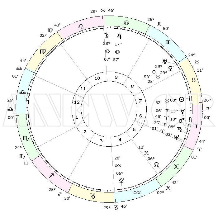 | | ΘΕΣΕΙΣ ΠΛΑΝΗΤΩΝ ΑΣΤΡΟΛΟΓΙΚΟΥ ΧΑΡΤΗ ΤΗΣ ΣΤΙΓΜΗΣ ΑΥΤΗΣ | | | | Πλανήτης | Ζώδιο | Μοίρες | Δεκαήμ. | Σε οίκο | Απόκλιση | | Ακμές των οίκων | | Ηλιος | Ταύρος | 03°29' | Πρώτο | 7 | 12 N 40 | | 1ος | 09°30' | Ζυγός | | Σελήνη | Καρκίνος | 27°20' | Τρίτο | 10 | 23 N 54 | | 2ος | 06°44' | Σκορπιός | | Ερμής | Κριός | 13°01' | Δεύτερο | 7 | 02 N 50 | | 3ος | 07°32' | Τοξότης | | Αφροδίτη | Ταύρος | 29°21' | Τρίτο | 8 | 20 N 34 | | 4ος | 10°42' | Αιγόκερως | | Αρης | Κριός | 10°43' | Δεύτερο | 7 | 03 N 23 | | 5ος | 13°38' | Υδροχόος | | Δίας | Καρκίνος | 17°57' | Δεύτερο | 10 | 22 N 37 | | 6ος | 13°40' | Ιχθείς | | Κρόνος | Κριός | 08°25' | Πρώτο | 6 | 01 N 21 | | 7ος | 09°30' | Κριός | | Ουρανός | Ταύρος | 29°52' | Τρίτο | 8 | 19 N 57 | | 8ος | 06°44' | Ταύρος | | Ποσειδώνας | Κριός | 03°01' | Πρώτο | 6 | 00 S 00 | | 9ος | 07°32' | Δίδυμοι | | Πλούτωνας | Υδροχόος | 05°28' | Πρώτο | 4 | 22 S 48 | | 10ος | 10°42' | Καρκίνος | | Β. Δεσμός | Ιχθείς | 06°12' | Πρώτο | 5 | 09 S 14 | | 11ος | 13°38' | Λέων | | Ωροσκόπος | Ζυγός | 09°30' | Πρώτο | | | 12ος | 13°40' | Παρθένος | | Μεσουράνημα | Καρκίνος | 10°42' | Δεύτερο | | | |