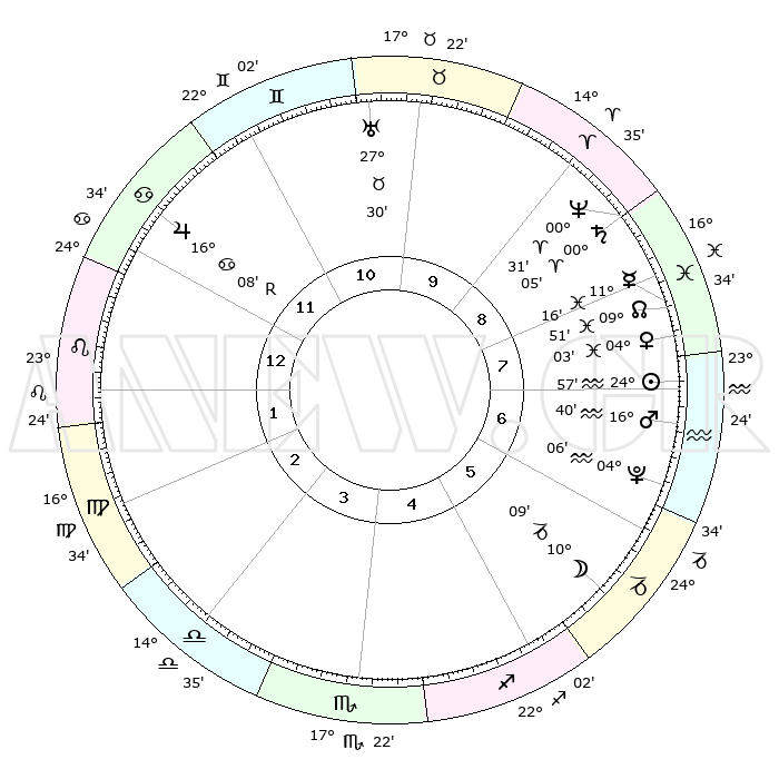 | | ΘΕΣΕΙΣ ΠΛΑΝΗΤΩΝ ΑΣΤΡΟΛΟΓΙΚΟΥ ΧΑΡΤΗ ΤΗΣ ΣΤΙΓΜΗΣ ΑΥΤΗΣ | | | | Πλανήτης | Ζώδιο | Μοίρες | Δεκαήμ. | Σε οίκο | Απόκλιση | | Ακμές των οίκων | | Ηλιος | Υδροχόος | 24°53' | Τρίτο | 7 | 13 S 13 | | 1ος | 04°17' | Λέων | | Σελήνη | Αιγόκερως | 09°21' | Πρώτο | 6 | 27 S 38 | | 2ος | 25°38' | Λέων | | Ερμής | Ιχθείς | 11°09' | Δεύτερο | 8 | 07 S 36 | | 3ος | 21°16' | Παρθένος | | Αφροδίτη | Ιχθείς | 03°59' | Πρώτο | 8 | 11 S 25 | | 4ος | 22°48' | Ζυγός | | Αρης | Υδροχόος | 16°37' | Δεύτερο | 7 | 16 S 53 | | 5ος | 28°42' | Σκορπιός | | Δίας | Καρκίνος | 16°08'R | Δεύτερο | 12 | 22 N 47 | | 6ος | 03°43' | Αιγόκερως | | Κρόνος | Κριός | 00°04' | Πρώτο | 9 | 01 S 57 | | 7ος | 04°17' | Υδροχόος | | Ουρανός | Ταύρος | 27°30' | Τρίτο | 10 | 19 N 25 | | 8ος | 25°38' | Υδροχόος | | Ποσειδώνας | Κριός | 00°31' | Πρώτο | 9 | 01 S 00 | | 9ος | 21°16' | Ιχθείς | | Πλούτωνας | Υδροχόος | 04°06' | Πρώτο | 6 | 22 S 57 | | 10ος | 22°48' | Κριός | | Β. Δεσμός | Ιχθείς | 09°52' | Πρώτο | 8 | 07 S 52 | | 11ος | 28°42' | Ταύρος | | Ωροσκόπος | Λέων | 04°17' | Πρώτο | | | 12ος | 03°43' | Καρκίνος | | Μεσουράνημα | Κριός | 22°48' | Τρίτο | | | |