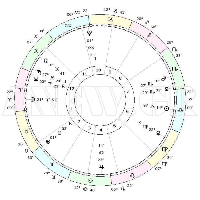 | ΘΕΣΕΙΣ ΠΛΑΝΗΤΩΝ ΑΣΤΡΟΛΟΓΙΚΟΥ ΧΑΡΤΗ ΤΗΣ ΣΤΙΓΜΗΣ ΑΥΤΗΣ | | Πλανήτης | Ζώδιο | Μοίρες | Δεκαήμ. | Σε οίκο | Απόκλιση | | Ακμές των οίκων | Ηλιος | Ζυγός | 14°34' | Δεύτερο | 7 | 05 S 44 | | 1ος | 29°25' | Υδροχόος | Σελήνη | Κριός | 20°29' | Τρίτο | 2 | 10 N 35 | | 2ος | 14°53' | Κριός | Ερμής | Σκορπιός | 01°21' | Πρώτο | 8 | 12 S 46 | | 3ος | 17°43' | Ταύρος | Αφροδίτη | Παρθένος | 22°12' | Τρίτο | 7 | 04 N 24 | | 4ος | 12°10' | Δίδυμοι | Αρης | Σκορπιός | 10°23' | Δεύτερο | 8 | 15 S 04 | | 5ος | 03°52' | Καρκίνος | Δίας | Καρκίνος | 23°13' | Τρίτο | 5 | 21 N 28 | | 6ος | 27°22' | Καρκίνος | Κρόνος | Ιχθείς | 27°24'R | Τρίτο | 1 | 03 S 20 | | 7ος | 29°25' | Λέων | Ουρανός | Δίδυμοι | 01°03'R | Πρώτο | 3 | 20 N 10 | | 8ος | 14°53' | Ζυγός | Ποσειδώνας | Κριός | 00°22'R | Πρώτο | 1 | 01 S 07 | | 9ος | 17°43' | Σκορπιός | Πλούτωνας | Υδροχόος | 01°23'R | Πρώτο | 12 | 23 S 32 | | 10ος | 12°10' | Τοξότης | Β. Δεσμός | Ιχθείς | 16°42' | Δεύτερο | 1 | 05 S 15 | | 11ος | 03°52' | Αιγόκερως | Ωροσκόπος | Υδροχόος | 29°25' | Τρίτο | | | 12ος | 27°22' | Αιγόκερως | Μεσουράνημα | Τοξότης | 12°10' | Δεύτερο | | | |