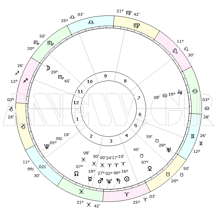 | | ΘΕΣΕΙΣ ΠΛΑΝΗΤΩΝ ΑΣΤΡΟΛΟΓΙΚΟΥ ΧΑΡΤΗ ΤΗΣ ΣΤΙΓΜΗΣ ΑΥΤΗΣ | | | | Πλανήτης | Ζώδιο | Μοίρες | Δεκαήμ. | Σε οίκο | Απόκλιση | | Ακμές των οίκων | | Ηλιος | Κριός | 16°06' | Δεύτερο | 4 | 06 N 20 | | 1ος | 09°58' | Τοξότης | | Σελήνη | Σκορπιός | 28°52' | Τρίτο | 12 | 24 S 52 | | 2ος | 12°42' | Αιγόκερως | | Ερμής | Ιχθείς | 18°26' | Δεύτερο | 3 | 06 S 23 | | 3ος | 20°05' | Υδροχόος | | Αφροδίτη | Ταύρος | 07°40' | Πρώτο | 5 | 13 N 50 | | 4ος | 26°04' | Ιχθείς | | Αρης | Ιχθείς | 26°57' | Τρίτο | 4 | 02 S 09 | | 5ος | 25°41' | Κριός | | Δίας | Καρκίνος | 16°08' | Δεύτερο | 8 | 22 N 50 | | 6ος | 19°26' | Ταύρος | | Κρόνος | Κριός | 06°16' | Πρώτο | 4 | 00 N 32 | | 7ος | 09°58' | Δίδυμοι | | Ουρανός | Ταύρος | 28°59' | Τρίτο | 6 | 19 N 46 | | 8ος | 12°42' | Καρκίνος | | Ποσειδώνας | Κριός | 02°24' | Πρώτο | 4 | 00 S 15 | | 9ος | 20°05' | Λέων | | Πλούτωνας | Υδροχόος | 05°17' | Πρώτο | 2 | 22 S 47 | | 10ος | 26°04' | Παρθένος | | Β. Δεσμός | Ιχθείς | 07°09' | Πρώτο | 3 | 08 S 53 | | 11ος | 25°41' | Ζυγός | | Ωροσκόπος | Τοξότης | 09°58' | Πρώτο | | | 12ος | 19°26' | Σκορπιός | | Μεσουράνημα | Παρθένος | 26°04' | Τρίτο | | | |