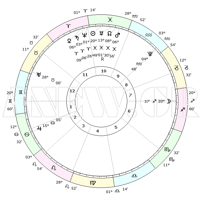 | | ΘΕΣΕΙΣ ΠΛΑΝΗΤΩΝ ΑΣΤΡΟΛΟΓΙΚΟΥ ΧΑΡΤΗ ΤΗΣ ΣΤΙΓΜΗΣ ΑΥΤΗΣ | | | | Πλανήτης | Ζώδιο | Μοίρες | Δεκαήμ. | Σε οίκο | Απόκλιση | | Ακμές των οίκων | | Ηλιος | Ιχθείς | 20°45' | Τρίτο | 11 | 03 S 40 | | 1ος | 27°39' | Ταύρος | | Σελήνη | Τοξότης | 19°54' | Δεύτερο | 7 | 28 S 13 | | 2ος | 22°57' | Δίδυμοι | | Ερμής | Ιχθείς | 13°04'R | Δεύτερο | 11 | 03 S 43 | | 3ος | 14°27' | Καρκίνος | | Αφροδίτη | Κριός | 06°04' | Πρώτο | 11 | 01 N 21 | | 4ος | 07°03' | Λέων | | Αρης | Ιχθείς | 06°53' | Πρώτο | 11 | 10 S 00 | | 5ος | 05°07' | Παρθένος | | Δίας | Καρκίνος | 15°05' | Δεύτερο | 3 | 22 N 56 | | 6ος | 13°11' | Ζυγός | | Κρόνος | Κριός | 03°05' | Πρώτο | 11 | 00 S 43 | | 7ος | 27°39' | Σκορπιός | | Ουρανός | Ταύρος | 27°60' | Τρίτο | 1 | 19 N 32 | | 8ος | 22°57' | Τοξότης | | Ποσειδώνας | Κριός | 01°26' | Πρώτο | 11 | 00 S 38 | | 9ος | 14°27' | Αιγόκερως | | Πλούτωνας | Υδροχόος | 04°48' | Πρώτο | 9 | 22 S 50 | | 10ος | 07°03' | Υδροχόος | | Β. Δεσμός | Ιχθείς | 08°30' | Πρώτο | 11 | 08 S 23 | | 11ος | 05°07' | Ιχθείς | | Ωροσκόπος | Ταύρος | 27°39' | Τρίτο | | | 12ος | 13°11' | Κριός | | Μεσουράνημα | Υδροχόος | 07°03' | Πρώτο | | | |