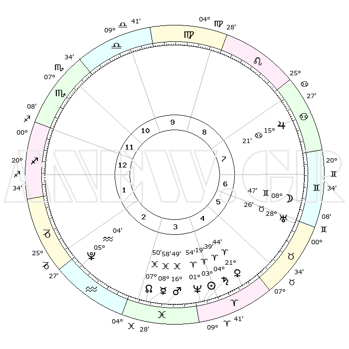 | | ΘΕΣΕΙΣ ΠΛΑΝΗΤΩΝ ΑΣΤΡΟΛΟΓΙΚΟΥ ΧΑΡΤΗ ΤΗΣ ΣΤΙΓΜΗΣ ΑΥΤΗΣ | | | | Πλανήτης | Ζώδιο | Μοίρες | Δεκαήμ. | Σε οίκο | Απόκλιση | | Ακμές των οίκων | | Ηλιος | Κριός | 03°15' | Πρώτο | 4 | 01 N 17 | | 1ος | 28°28' | Σκορπιός | | Σελήνη | Δίδυμοι | 07°43' | Πρώτο | 7 | 26 N 45 | | 2ος | 29°24' | Τοξότης | | Ερμής | Ιχθείς | 08°57' | Πρώτο | 3 | 07 S 58 | | 3ος | 04°51' | Υδροχόος | | Αφροδίτη | Κριός | 21°38' | Τρίτο | 5 | 07 N 44 | | 4ος | 10°51' | Ιχθείς | | Αρης | Ιχθείς | 16°46' | Δεύτερο | 4 | 06 S 12 | | 5ος | 12°04' | Κριός | | Δίας | Καρκίνος | 15°21' | Δεύτερο | 8 | 22 N 55 | | 6ος | 07°20' | Ταύρος | | Κρόνος | Κριός | 04°39' | Πρώτο | 4 | 00 S 06 | | 7ος | 28°28' | Ταύρος | | Ουρανός | Ταύρος | 28°26' | Τρίτο | 6 | 19 N 38 | | 8ος | 29°24' | Δίδυμοι | | Ποσειδώνας | Κριός | 01°54' | Πρώτο | 4 | 00 S 27 | | 9ος | 04°51' | Λέων | | Πλούτωνας | Υδροχόος | 05°04' | Πρώτο | 3 | 22 S 48 | | 10ος | 10°51' | Παρθένος | | Β. Δεσμός | Ιχθείς | 07°50' | Πρώτο | 3 | 08 S 38 | | 11ος | 12°04' | Ζυγός | | Ωροσκόπος | Σκορπιός | 28°28' | Τρίτο | | | 12ος | 07°20' | Σκορπιός | | Μεσουράνημα | Παρθένος | 10°51' | Δεύτερο | | | |