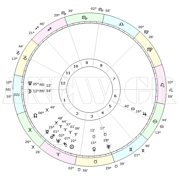 | | ΘΕΣΕΙΣ ΠΛΑΝΗΤΩΝ ΑΣΤΡΟΛΟΓΙΚΟΥ ΧΑΡΤΗ ΤΗΣ ΣΤΙΓΜΗΣ ΑΥΤΗΣ | | | | Πλανήτης | Ζώδιο | Μοίρες | Δεκαήμ. | Σε οίκο | Απόκλιση | | Ακμές των οίκων | | Ηλιος | Κριός | 22°05' | Τρίτο | 3 | 08 N 36 | | 1ος | 14°26' | Αιγόκερως | | Σελήνη | Υδροχόος | 12°05' | Δεύτερο | 1 | 19 S 21 | | 2ος | 25°15' | Υδροχόος | | Ερμής | Ιχθείς | 25°43' | Τρίτο | 2 | 03 S 58 | | 3ος | 05°23' | Κριός | | Αφροδίτη | Ταύρος | 15°08' | Δεύτερο | 4 | 16 N 24 | | 4ος | 06°44' | Ταύρος | | Αρης | Κριός | 01°41' | Πρώτο | 2 | 00 S 15 | | 5ος | 01°00' | Δίδυμοι | | Δίας | Καρκίνος | 16°40' | Δεύτερο | 7 | 22 N 46 | | 6ος | 22°14' | Δίδυμοι | | Κρόνος | Κριός | 07°01' | Πρώτο | 3 | 00 N 49 | | 7ος | 14°25' | Καρκίνος | | Ουρανός | Ταύρος | 29°16' | Τρίτο | 4 | 19 N 50 | | 8ος | 25°15' | Λέων | | Ποσειδώνας | Κριός | 02°37' | Πρώτο | 2 | 00 S 10 | | 9ος | 05°23' | Ζυγός | | Πλούτωνας | Υδροχόος | 05°22' | Πρώτο | 1 | 22 S 47 | | 10ος | 06°44' | Σκορπιός | | Β. Δεσμός | Ιχθείς | 06°49' | Πρώτο | 2 | 09 S 00 | | 11ος | 01°00' | Τοξότης | | Ωροσκόπος | Αιγόκερως | 14°26' | Δεύτερο | | | 12ος | 22°14' | Τοξότης | | Μεσουράνημα | Σκορπιός | 06°44' | Πρώτο | | | |