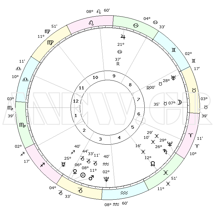 | | ΘΕΣΕΙΣ ΠΛΑΝΗΤΩΝ ΑΣΤΡΟΛΟΓΙΚΟΥ ΧΑΡΤΗ ΤΗΣ ΣΤΙΓΜΗΣ ΑΥΤΗΣ | | | | Πλανήτης | Ζώδιο | Μοίρες | Δεκαήμ. | Σε οίκο | Απόκλιση | | Ακμές των οίκων | | Ηλιος | Αιγόκερως | 08°29' | Πρώτο | 3 | 23 S 10 | | 1ος | 11°31' | Ζυγός | | Σελήνη | Ταύρος | 06°29' | Πρώτο | 7 | 17 N 37 | | 2ος | 08°52' | Σκορπιός | | Ερμής | Τοξότης | 25°33' | Τρίτο | 3 | 23 S 42 | | 3ος | 09°45' | Τοξότης | | Αφροδίτη | Αιγόκερως | 06°38' | Πρώτο | 3 | 23 S 42 | | 4ος | 12°59' | Αιγόκερως | | Αρης | Αιγόκερως | 11°08' | Δεύτερο | 3 | 23 S 51 | | 5ος | 15°55' | Υδροχόος | | Δίας | Καρκίνος | 21°37'R | Τρίτο | 10 | 21 N 56 | | 6ος | 15°51' | Ιχθείς | | Κρόνος | Ιχθείς | 26°10' | Τρίτο | 6 | 03 S 36 | | 7ος | 11°31' | Κριός | | Ουρανός | Ταύρος | 28°00'R | Τρίτο | 8 | 19 N 31 | | 8ος | 08°52' | Ταύρος | | Ποσειδώνας | Ιχθείς | 29°29' | Τρίτο | 6 | 01 S 26 | | 9ος | 09°45' | Δίδυμοι | | Πλούτωνας | Υδροχόος | 02°40' | Πρώτο | 4 | 23 S 14 | | 10ος | 12°59' | Καρκίνος | | Β. Δεσμός | Ιχθείς | 12°17' | Δεύτερο | 5 | 06 S 57 | | 11ος | 15°55' | Λέων | | Ωροσκόπος | Ζυγός | 11°31' | Δεύτερο | | | 12ος | 15°51' | Παρθένος | | Μεσουράνημα | Καρκίνος | 12°59' | Δεύτερο | | | |
