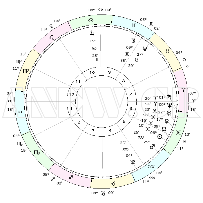 | | ΘΕΣΕΙΣ ΠΛΑΝΗΤΩΝ ΑΣΤΡΟΛΟΓΙΚΟΥ ΧΑΡΤΗ ΤΗΣ ΣΤΙΓΜΗΣ ΑΥΤΗΣ | | | | Πλανήτης | Ζώδιο | Μοίρες | Δεκαήμ. | Σε οίκο | Απόκλιση | | Ακμές των οίκων | | Ηλιος | Ιχθείς | 06°06' | Πρώτο | 6 | 09 S 16 | | 1ος | 17°60' | Παρθένος | | Σελήνη | Δίδυμοι | 08°40' | Πρώτο | 9 | 26 N 57 | | 2ος | 13°37' | Ζυγός | | Ερμής | Ιχθείς | 22°22' | Τρίτο | 7 | 00 S 48 | | 3ος | 13°32' | Σκορπιός | | Αφροδίτη | Ιχθείς | 17°53' | Δεύτερο | 6 | 06 S 06 | | 4ος | 16°28' | Τοξότης | | Αρης | Υδροχόος | 25°23' | Τρίτο | 6 | 14 S 05 | | 5ος | 19°43' | Αιγόκερως | | Δίας | Καρκίνος | 15°25'R | Δεύτερο | 10 | 22 N 53 | | 6ος | 20°37' | Υδροχόος | | Κρόνος | Κριός | 01°20' | Πρώτο | 7 | 01 S 26 | | 7ος | 17°60' | Ιχθείς | | Ουρανός | Ταύρος | 27°39' | Τρίτο | 9 | 19 N 27 | | 8ος | 13°37' | Κριός | | Ποσειδώνας | Κριός | 00°54' | Πρώτο | 7 | 00 S 51 | | 9ος | 13°32' | Ταύρος | | Πλούτωνας | Υδροχόος | 04°25' | Πρώτο | 5 | 22 S 54 | | 10ος | 16°28' | Δίδυμοι | | Β. Δεσμός | Ιχθείς | 09°16' | Πρώτο | 6 | 08 S 05 | | 11ος | 19°43' | Καρκίνος | | Ωροσκόπος | Παρθένος | 17°60' | Δεύτερο | | | 12ος | 20°37' | Λέων | | Μεσουράνημα | Δίδυμοι | 16°28' | Δεύτερο | | | |