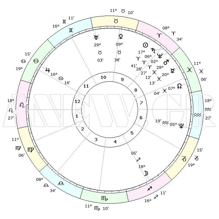 | | ΘΕΣΕΙΣ ΠΛΑΝΗΤΩΝ ΑΣΤΡΟΛΟΓΙΚΟΥ ΧΑΡΤΗ ΤΗΣ ΣΤΙΓΜΗΣ ΑΥΤΗΣ | | | | Πλανήτης | Ζώδιο | Μοίρες | Δεκαήμ. | Σε οίκο | Απόκλιση | | Ακμές των οίκων | | Ηλιος | Κριός | 17°37' | Δεύτερο | 10 | 06 N 55 | | 1ος | 29°18' | Καρκίνος | | Σελήνη | Τοξότης | 17°18' | Δεύτερο | 5 | 27 S 54 | | 2ος | 20°18' | Λέων | | Ερμής | Ιχθείς | 20°09' | Τρίτο | 9 | 05 S 51 | | 3ος | 15°15' | Παρθένος | | Αφροδίτη | Ταύρος | 09°34' | Πρώτο | 10 | 14 N 31 | | 4ος | 16°12' | Ζυγός | | Αρης | Ιχθείς | 28°09' | Τρίτο | 9 | 01 S 40 | | 5ος | 22°15' | Σκορπιός | | Δίας | Καρκίνος | 16°16' | Δεύτερο | 12 | 22 N 49 | | 6ος | 28°04' | Τοξότης | | Κρόνος | Κριός | 06°28' | Πρώτο | 9 | 00 N 36 | | 7ος | 29°18' | Αιγόκερως | | Ουρανός | Ταύρος | 29°03' | Τρίτο | 11 | 19 N 47 | | 8ος | 20°18' | Υδροχόος | | Ποσειδώνας | Κριός | 02°27' | Πρώτο | 9 | 00 S 14 | | 9ος | 15°15' | Ιχθείς | | Πλούτωνας | Υδροχόος | 05°19' | Πρώτο | 7 | 22 S 47 | | 10ος | 16°12' | Κριός | | Β. Δεσμός | Ιχθείς | 07°04' | Πρώτο | 8 | 08 S 55 | | 11ος | 22°15' | Ταύρος | | Ωροσκόπος | Καρκίνος | 29°18' | Τρίτο | | | 12ος | 28°05' | Δίδυμοι | | Μεσουράνημα | Κριός | 16°12' | Δεύτερο | | | |