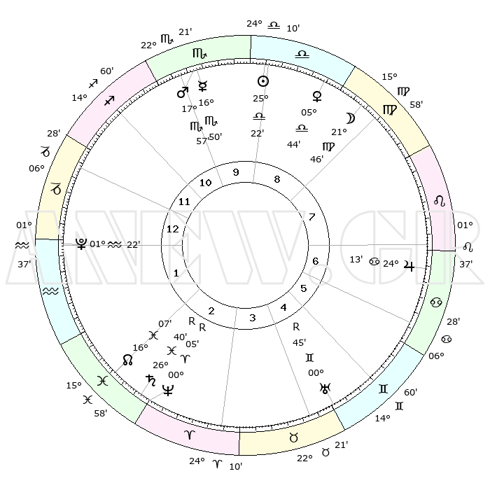 | ΘΕΣΕΙΣ ΠΛΑΝΗΤΩΝ ΑΣΤΡΟΛΟΓΙΚΟΥ ΧΑΡΤΗ ΤΗΣ ΣΤΙΓΜΗΣ ΑΥΤΗΣ | | Πλανήτης | Ζώδιο | Μοίρες | Δεκαήμ. | Σε οίκο | Απόκλιση | | Ακμές των οίκων | Ηλιος | Ζυγός | 25°16' | Τρίτο | 10 | 09 S 46 | | 1ος | 26°01' | Τοξότης | Σελήνη | Παρθένος | 20°35' | Τρίτο | 9 | 03 N 31 | | 2ος | 02°11' | Υδροχόος | Ερμής | Σκορπιός | 16°43' | Δεύτερο | 11 | 18 S 49 | | 3ος | 11°51' | Ιχθείς | Αφροδίτη | Ζυγός | 05°37' | Πρώτο | 9 | 00 S 50 | | 4ος | 16°23' | Κριός | Αρης | Σκορπιός | 17°53' | Δεύτερο | 11 | 17 S 24 | | 5ος | 13°21' | Ταύρος | Δίας | Καρκίνος | 24°12' | Τρίτο | 7 | 21 N 19 | | 6ος | 05°26' | Δίδυμοι | Κρόνος | Ιχθείς | 26°40'R | Τρίτο | 3 | 03 S 37 | | 7ος | 26°01' | Δίδυμοι | Ουρανός | Δίδυμοι | 00°45'R | Πρώτο | 5 | 20 N 06 | | 8ος | 02°11' | Λέων | Ποσειδώνας | Κριός | 00°06'R | Πρώτο | 3 | 01 S 13 | | 9ος | 11°51' | Παρθένος | Πλούτωνας | Υδροχόος | 01°22' | Πρώτο | 1 | 23 S 32 | | 10ος | 16°23' | Ζυγός | Β. Δεσμός | Ιχθείς | 16°07' | Δεύτερο | 3 | 05 S 28 | | 11ος | 13°21' | Σκορπιός | Ωροσκόπος | Τοξότης | 26°01' | Τρίτο | | | 12ος | 05°26' | Τοξότης | Μεσουράνημα | Ζυγός | 16°23' | Δεύτερο | | | |