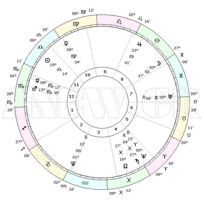| ΘΕΣΕΙΣ ΠΛΑΝΗΤΩΝ ΑΣΤΡΟΛΟΓΙΚΟΥ ΧΑΡΤΗ ΤΗΣ ΣΤΙΓΜΗΣ ΑΥΤΗΣ | | Πλανήτης | Ζώδιο | Μοίρες | Δεκαήμ. | Σε οίκο | Απόκλιση | | Ακμές των οίκων | Ηλιος | Ζυγός | 19°09' | Δεύτερο | 12 | 07 S 30 | | 1ος | 28°16' | Ζυγός | Σελήνη | Δίδυμοι | 29°14' | Τρίτο | 9 | 28 N 33 | | 2ος | 26°35' | Σκορπιός | Ερμής | Σκορπιός | 08°09' | Πρώτο | 1 | 15 S 34 | | 3ος | 28°24' | Τοξότης | Αφροδίτη | Παρθένος | 27°57' | Τρίτο | 11 | 02 N 11 | | 4ος | 02°29' | Υδροχόος | Αρης | Σκορπιός | 13°35' | Δεύτερο | 1 | 16 S 06 | | 5ος | 05°25' | Ιχθείς | Δίας | Καρκίνος | 23°41' | Τρίτο | 9 | 21 N 24 | | 6ος | 04°14' | Κριός | Κρόνος | Ιχθείς | 27°04'R | Τρίτο | 5 | 03 S 28 | | 7ος | 28°16' | Κριός | Ουρανός | Δίδυμοι | 00°56'R | Πρώτο | 8 | 20 N 08 | | 8ος | 26°35' | Ταύρος | Ποσειδώνας | Κριός | 00°15'R | Πρώτο | 5 | 01 S 10 | | 9ος | 28°24' | Δίδυμοι | Πλούτωνας | Υδροχόος | 01°22'R | Πρώτο | 3 | 23 S 32 | | 10ος | 02°29' | Λέων | Β. Δεσμός | Ιχθείς | 16°27' | Δεύτερο | 5 | 05 S 21 | | 11ος | 05°25' | Παρθένος | Ωροσκόπος | Ζυγός | 28°16' | Τρίτο | | | 12ος | 04°14' | Ζυγός | Μεσουράνημα | Λέων | 02°29' | Πρώτο | | | |