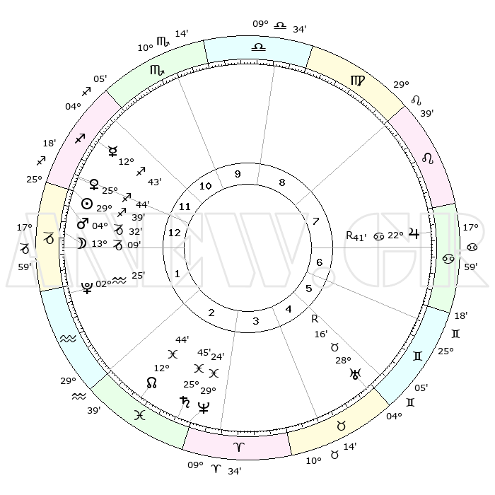 | | ΘΕΣΕΙΣ ΠΛΑΝΗΤΩΝ ΑΣΤΡΟΛΟΓΙΚΟΥ ΧΑΡΤΗ ΤΗΣ ΣΤΙΓΜΗΣ ΑΥΤΗΣ | | | | Πλανήτης | Ζώδιο | Μοίρες | Δεκαήμ. | Σε οίκο | Απόκλιση | | Ακμές των οίκων | | Ηλιος | Τοξότης | 29°36' | Τρίτο | 1 | 23 S 26 | | 1ος | 25°56' | Τοξότης | | Σελήνη | Αιγόκερως | 12°23' | Δεύτερο | 1 | 27 S 09 | | 2ος | 02°05' | Υδροχόος | | Ερμής | Τοξότης | 12°37' | Δεύτερο | 12 | 21 S 34 | | 3ος | 11°44' | Ιχθείς | | Αφροδίτη | Τοξότης | 25°39' | Τρίτο | 12 | 23 S 27 | | 4ος | 16°17' | Κριός | | Αρης | Αιγόκερως | 04°29' | Πρώτο | 1 | 24 S 11 | | 5ος | 13°15' | Ταύρος | | Δίας | Καρκίνος | 22°41'R | Τρίτο | 7 | 21 N 44 | | 6ος | 05°21' | Δίδυμοι | | Κρόνος | Ιχθείς | 25°45' | Τρίτο | 3 | 03 S 48 | | 7ος | 25°56' | Δίδυμοι | | Ουρανός | Ταύρος | 28°17'R | Τρίτο | 5 | 19 N 35 | | 8ος | 02°05' | Λέων | | Ποσειδώνας | Ιχθείς | 29°24' | Τρίτο | 3 | 01 S 28 | | 9ος | 11°44' | Παρθένος | | Πλούτωνας | Υδροχόος | 02°25' | Πρώτο | 2 | 23 S 17 | | 10ος | 16°17' | Ζυγός | | Β. Δεσμός | Ιχθείς | 12°44' | Δεύτερο | 3 | 06 S 47 | | 11ος | 13°15' | Σκορπιός | | Ωροσκόπος | Τοξότης | 25°56' | Τρίτο | | | 12ος | 05°21' | Τοξότης | | Μεσουράνημα | Ζυγός | 16°17' | Δεύτερο | | | |