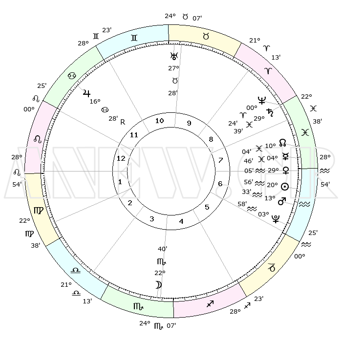 | | ΘΕΣΕΙΣ ΠΛΑΝΗΤΩΝ ΑΣΤΡΟΛΟΓΙΚΟΥ ΧΑΡΤΗ ΤΗΣ ΣΤΙΓΜΗΣ ΑΥΤΗΣ | | | | Πλανήτης | Ζώδιο | Μοίρες | Δεκαήμ. | Σε οίκο | Απόκλιση | | Ακμές των οίκων | | Ηλιος | Υδροχόος | 20°53' | Τρίτο | 7 | 14 S 32 | | 1ος | 11°12' | Λέων | | Σελήνη | Σκορπιός | 21°57' | Τρίτο | 4 | 23 S 06 | | 2ος | 03°08' | Παρθένος | | Ερμής | Ιχθείς | 04°40' | Πρώτο | 8 | 10 S 42 | | 3ος | 29°41' | Παρθένος | | Αφροδίτη | Υδροχόος | 29°00' | Τρίτο | 7 | 13 S 11 | | 4ος | 01°51' | Σκορπιός | | Αρης | Υδροχόος | 13°30' | Δεύτερο | 7 | 17 S 47 | | 5ος | 07°23' | Τοξότης | | Δίας | Καρκίνος | 16°29'R | Δεύτερο | 12 | 22 N 44 | | 6ος | 11°22' | Αιγόκερως | | Κρόνος | Ιχθείς | 29°38' | Τρίτο | 8 | 02 S 07 | | 7ος | 11°12' | Υδροχόος | | Ουρανός | Ταύρος | 27°28' | Τρίτο | 10 | 19 N 25 | | 8ος | 03°08' | Ιχθείς | | Ποσειδώνας | Κριός | 00°24' | Πρώτο | 9 | 01 S 03 | | 9ος | 29°41' | Ιχθείς | | Πλούτωνας | Υδροχόος | 03°58' | Πρώτο | 6 | 22 S 58 | | 10ος | 01°51' | Ταύρος | | Β. Δεσμός | Ιχθείς | 10°04' | Δεύτερο | 8 | 07 S 47 | | 11ος | 07°23' | Δίδυμοι | | Ωροσκόπος | Λέων | 11°12' | Δεύτερο | | | 12ος | 11°22' | Καρκίνος | | Μεσουράνημα | Ταύρος | 01°51' | Πρώτο | | | |