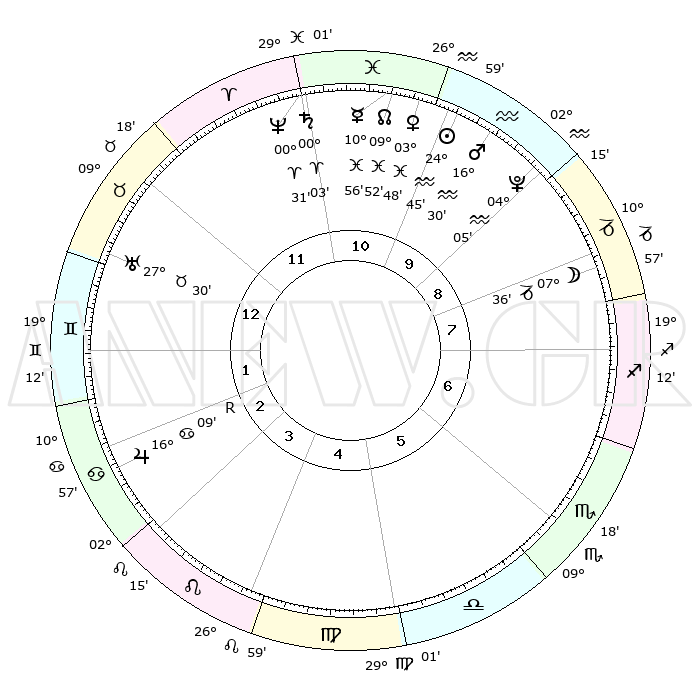 | | ΘΕΣΕΙΣ ΠΛΑΝΗΤΩΝ ΑΣΤΡΟΛΟΓΙΚΟΥ ΧΑΡΤΗ ΤΗΣ ΣΤΙΓΜΗΣ ΑΥΤΗΣ | | | | Πλανήτης | Ζώδιο | Μοίρες | Δεκαήμ. | Σε οίκο | Απόκλιση | | Ακμές των οίκων | | Ηλιος | Υδροχόος | 24°41' | Τρίτο | 10 | 13 S 18 | | 1ος | 22°20' | Ταύρος | | Σελήνη | Αιγόκερως | 06°47' | Πρώτο | 8 | 27 S 55 | | 2ος | 18°48' | Δίδυμοι | | Ερμής | Ιχθείς | 10°50' | Δεύτερο | 11 | 07 S 46 | | 3ος | 10°34' | Καρκίνος | | Αφροδίτη | Ιχθείς | 03°43' | Πρώτο | 11 | 11 S 31 | | 4ος | 02°51' | Λέων | | Αρης | Υδροχόος | 16°27' | Δεύτερο | 10 | 16 S 56 | | 5ος | 00°03' | Παρθένος | | Δίας | Καρκίνος | 16°09'R | Δεύτερο | 3 | 22 N 47 | | 6ος | 07°11' | Ζυγός | | Κρόνος | Κριός | 00°03' | Πρώτο | 11 | 01 S 57 | | 7ος | 22°20' | Σκορπιός | | Ουρανός | Ταύρος | 27°30' | Τρίτο | 1 | 19 N 25 | | 8ος | 18°48' | Τοξότης | | Ποσειδώνας | Κριός | 00°31' | Πρώτο | 11 | 01 S 00 | | 9ος | 10°34' | Αιγόκερως | | Πλούτωνας | Υδροχόος | 04°05' | Πρώτο | 10 | 22 S 57 | | 10ος | 02°51' | Υδροχόος | | Β. Δεσμός | Ιχθείς | 09°52' | Πρώτο | 11 | 07 S 52 | | 11ος | 00°03' | Ιχθείς | | Ωροσκόπος | Ταύρος | 22°20' | Τρίτο | | | 12ος | 07°11' | Κριός | | Μεσουράνημα | Υδροχόος | 02°51' | Πρώτο | | | |