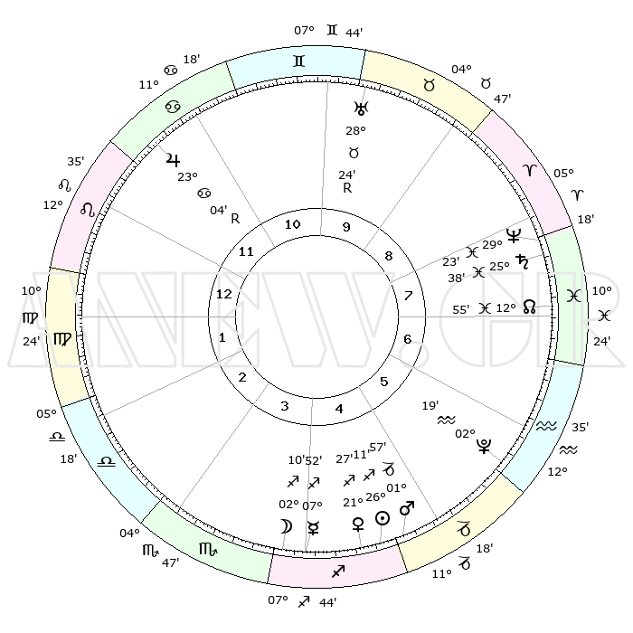 | | ΘΕΣΕΙΣ ΠΛΑΝΗΤΩΝ ΑΣΤΡΟΛΟΓΙΚΟΥ ΧΑΡΤΗ ΤΗΣ ΣΤΙΓΜΗΣ ΑΥΤΗΣ | | | | Πλανήτης | Ζώδιο | Μοίρες | Δεκαήμ. | Σε οίκο | Απόκλιση | | Ακμές των οίκων | | Ηλιος | Τοξότης | 26°06' | Τρίτο | 5 | 23 S 23 | | 1ος | 14°33' | Λέων | | Σελήνη | Τοξότης | 01°07' | Πρώτο | 4 | 25 S 10 | | 2ος | 06°48' | Παρθένος | | Ερμής | Τοξότης | 07°44' | Πρώτο | 4 | 20 S 26 | | 3ος | 03°47' | Ζυγός | | Αφροδίτη | Τοξότης | 21°20' | Τρίτο | 5 | 23 S 06 | | 4ος | 06°11' | Σκορπιός | | Αρης | Αιγόκερως | 01°53' | Πρώτο | 5 | 24 S 13 | | 5ος | 11°29' | Τοξότης | | Δίας | Καρκίνος | 23°04'R | Τρίτο | 12 | 21 N 40 | | 6ος | 15°02' | Αιγόκερως | | Κρόνος | Ιχθείς | 25°37' | Τρίτο | 8 | 03 S 52 | | 7ος | 14°33' | Υδροχόος | | Ουρανός | Ταύρος | 28°24'R | Τρίτο | 10 | 19 N 36 | | 8ος | 06°48' | Ιχθείς | | Ποσειδώνας | Ιχθείς | 29°23' | Τρίτο | 8 | 01 S 28 | | 9ος | 03°47' | Κριός | | Πλούτωνας | Υδροχόος | 02°19' | Πρώτο | 6 | 23 S 18 | | 10ος | 06°11' | Ταύρος | | Β. Δεσμός | Ιχθείς | 12°55' | Δεύτερο | 8 | 06 S 42 | | 11ος | 11°29' | Δίδυμοι | | Ωροσκόπος | Λέων | 14°33' | Δεύτερο | | | 12ος | 15°02' | Καρκίνος | | Μεσουράνημα | Ταύρος | 06°11' | Πρώτο | | | |